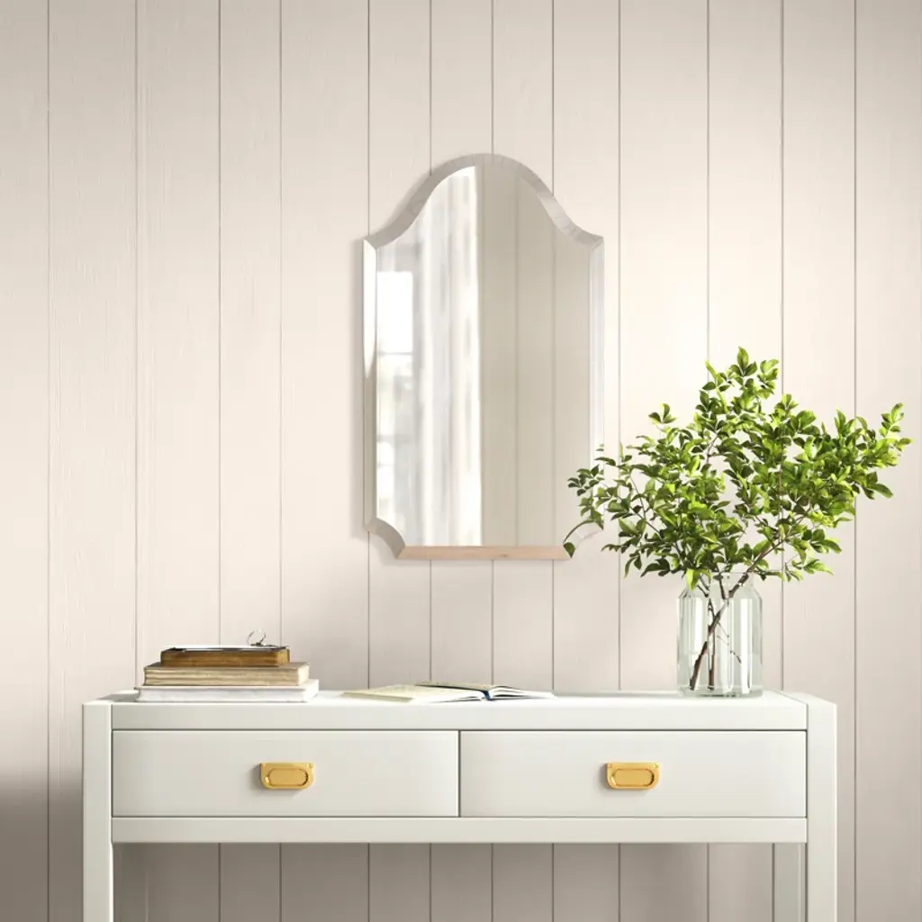 Borgnine Tall Arched Scalloped Frameless Wall Mirror