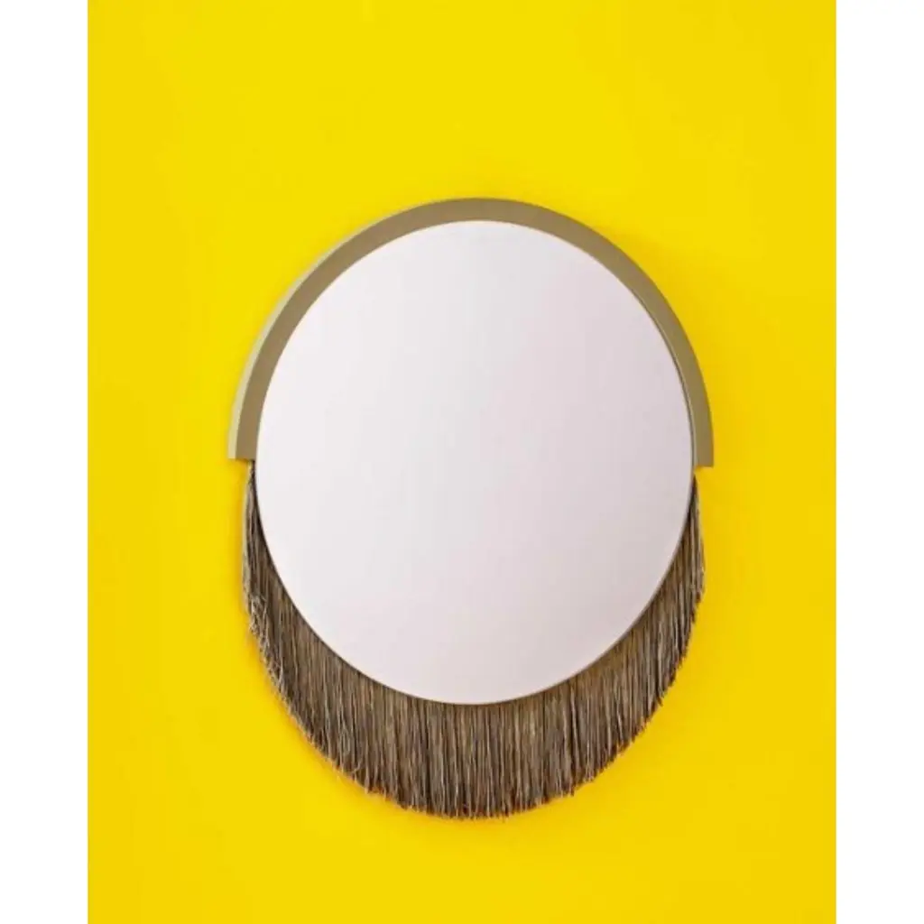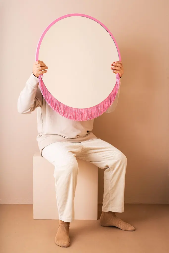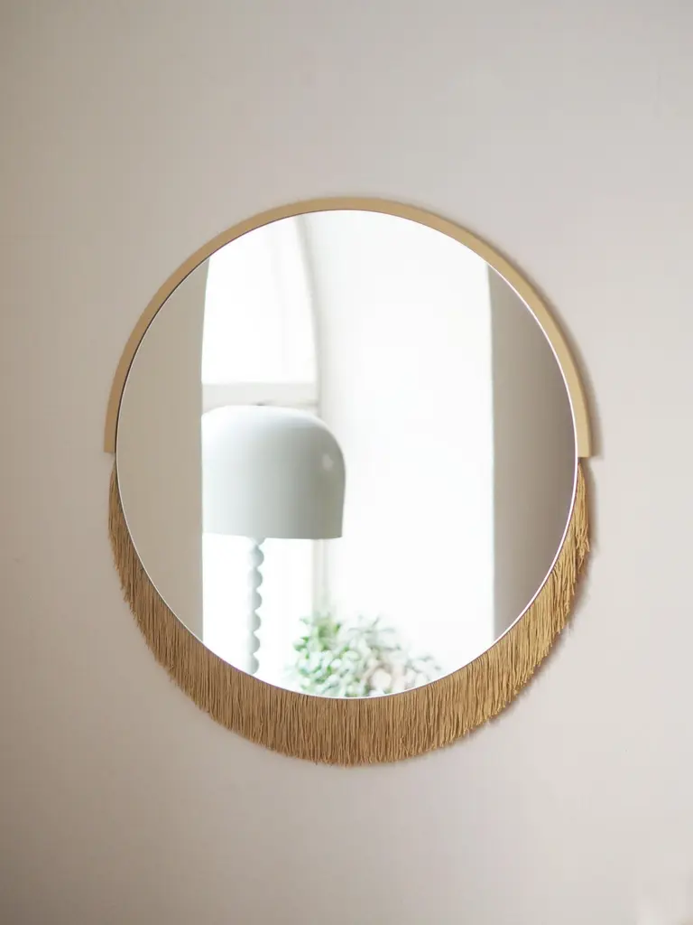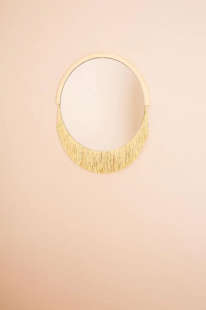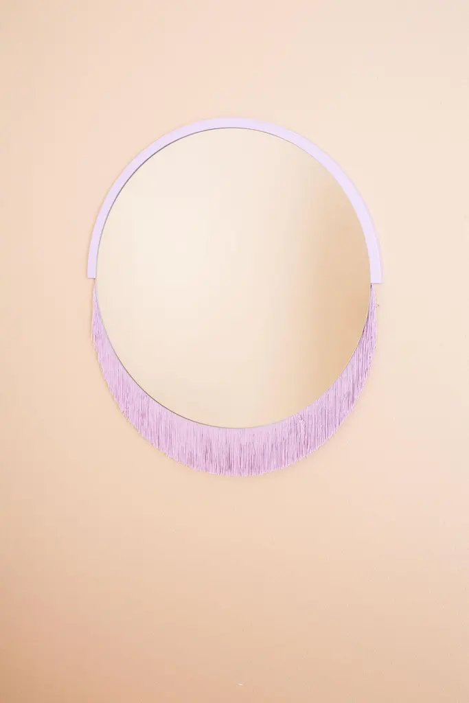 Boudoir medium wall mirror by Tero Kuitunen.Material: glass mirror, mdf board, textile fringes.Dimensions: D53 x W53 x H1.6 cmAlso available : different size, models and colors.Playful wall mirrors with fringe detail.Designer Tero Kuitunen, b. 1986, is inspired by the interface of design and art, the unprejudiced apposition of things, floating sceneries, and the meaning of humor and touch in design. Alongside product design, Tero is known for concept and space planning as well as memorable projects of contemporary art and design. He has graduated as a designer from the Applied Arts MA program at the Aalto University School of Art, Design and Architecture. Tero works as a product, concept and interior designer in projects for clients such as Supercell, Absolut Vodka, Hakola and many more. Currently Tero is working as a freelance designer with a vast experience in the design and art field. He has participated in international exhibitions and fairs in e.g. Beirut, Stockholm, Japan and Italy. 2019-2020 he curated and created the concept for Wild at Heart exhibition that toured to Vienna, Budapest, Stockholm, Tokyo and Helsinki. In 2021 Tero was invited to create together with Karoliina Hellberg and Raimo Saarinen a new exhibition at the prominent Amos Rex Museum. Tero has received a one-year working grant from the Finnish Cultural Foundation in 2017 and projects grands from Arts Promotion Centre Finland and City of Kotka.Throughout his work, Tero wants to find something that moves and touches people. Materials and colours are often his biggest inspiration when starting a new design project.