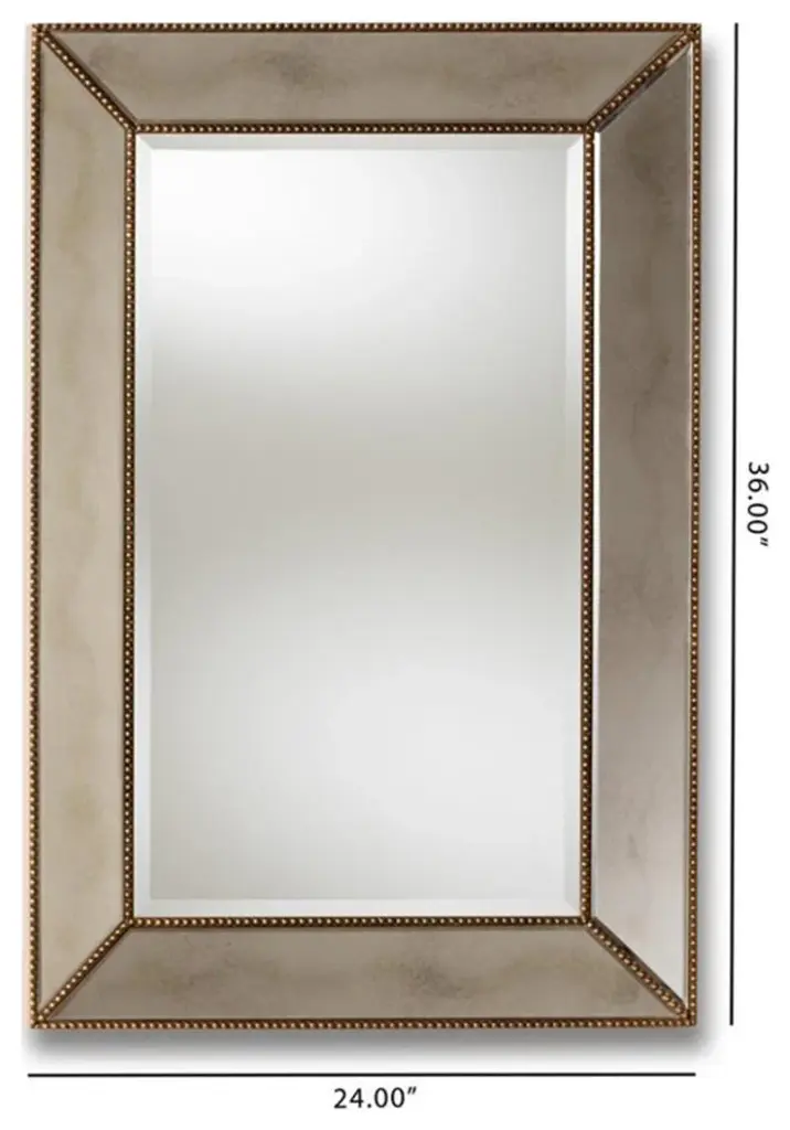 Add a touch of timeless elegance to your space with the Bowery Hill wall mirror. Constructed from sturdy MDF wood, the mirror features high-quality glass mirror panes inlaid among the framing to offer exceptional clarity in every reflection. The antique gold-finished frame is embellished with beads for a hint of glamour. This versatile piece can be hung either horizontally or vertically for a customizable display that suits your needs. The wall mirror is made in China and will arrive fully assembled.Features: • Constructed from MDF wood and mirror • Antique gold finish • Embellished frame • MDF/ Mirror • Wall mountableSpecifications: • Product Dimensions: 36" H x 24" W x 1.97" D