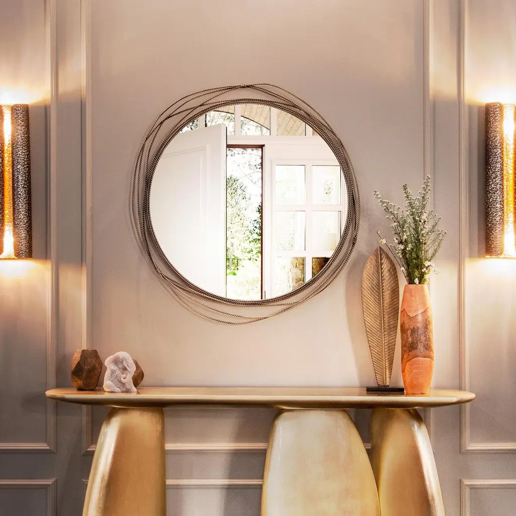 Mirror brass knot round with vintage brassframe structure and with mirror glass.