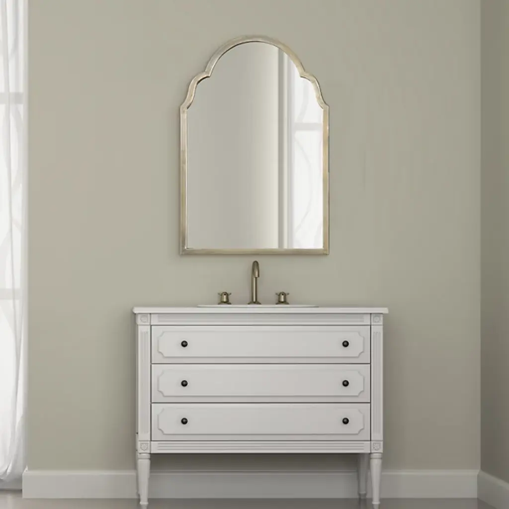 A subtle contemporary dimension radiates from the Brayden Petite Silver Arch Mirror by Uttermost. Your wall mirror features a gorgeous metal frame with finely contoured edges. The slim frame follows wending curves, surrounding the ample mirrored glass with contemporary flair. Hang this arched mirror in an entryway or above furniture to beautify before going out for the night.