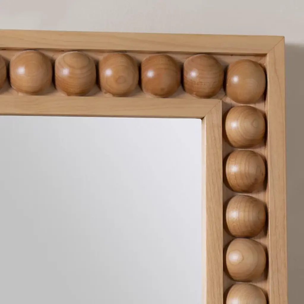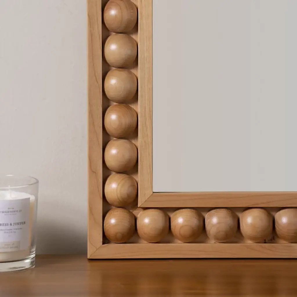 Add a touch of unique craftsmanship to your home with the Brayden Wall Mirror from Cooper Classics. Its wood frame, finished in warm honey oak, features a striking design of spherical accents sandwiched between two sleek panels. Perfect for rustic modern interiors, this mirror offers both visual interest and natural charm.