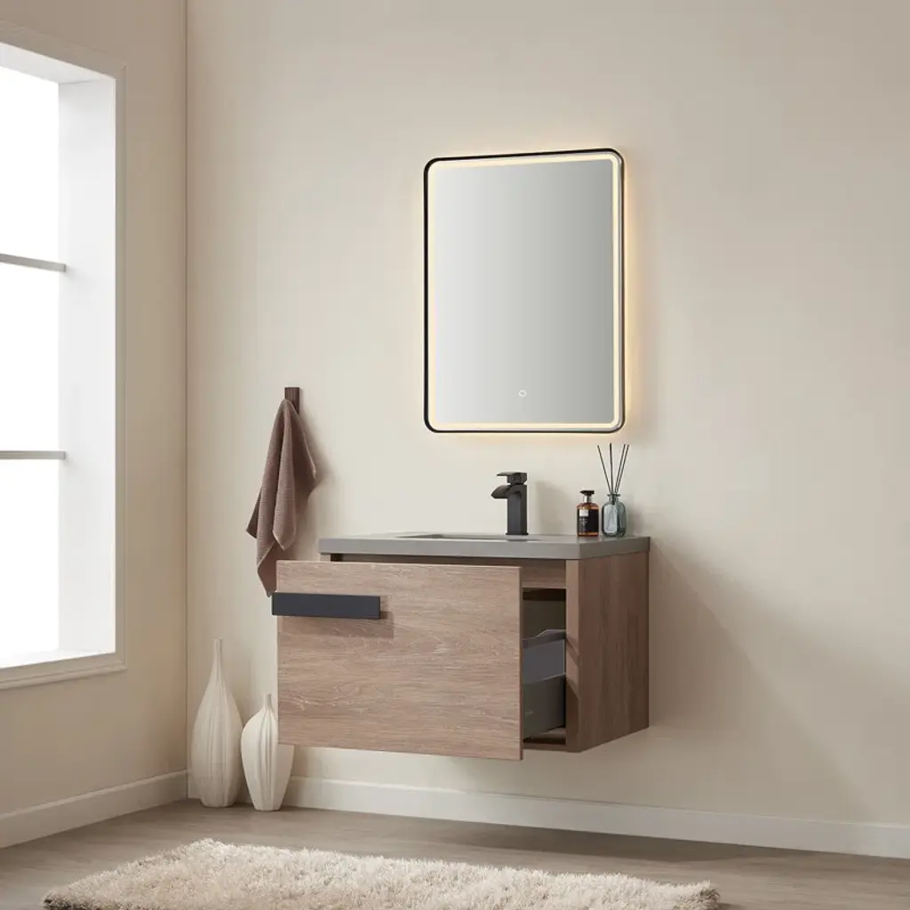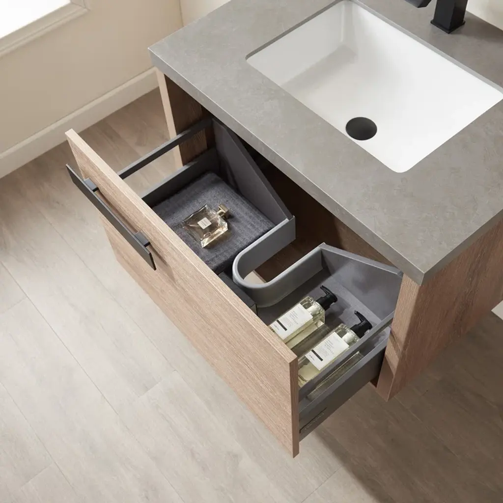 Complete your bathroom with modern style. This vanity features a solid surface countertop in a sleek gray finish. It includes an undermount white ceramic sink with an overflow hole. With one functional drawer and a safety stop, it offers both functionality and convenience. Mirror and cabinet hardware are included, making it the perfect addition to your space