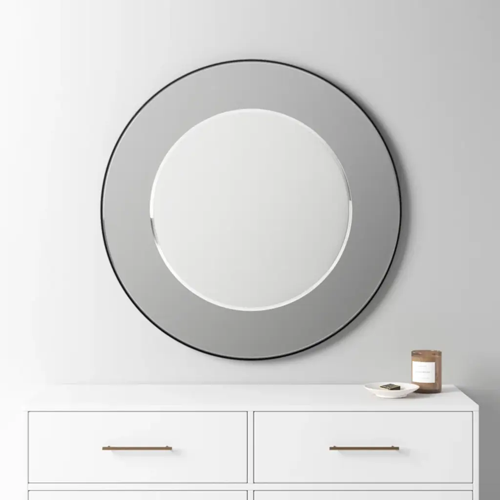 Our Brendan Mirror is a striking piece. It features a round frame of smoky gray mirrored glass. It is a perfect accent piece for an entryway, bathroom, bedroom or any room in your home. D-rings are affixed to the back of the mirror so it is ready to hang right out of the box! It is also available in a rectangular shape.