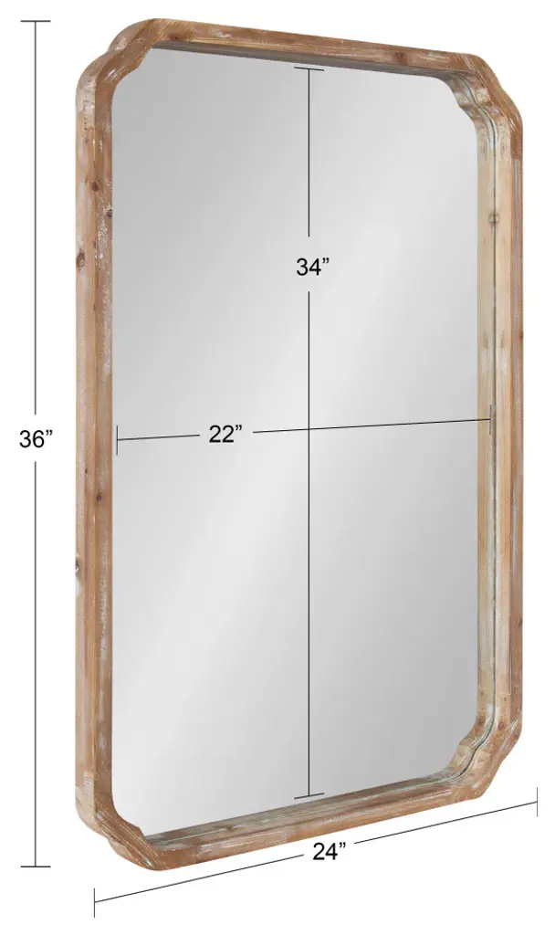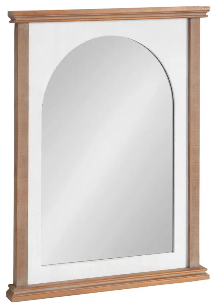 Decorate your home with a coastal aesthetic that makes a bold impression with the Brenna wall mirror from Kate and Laurel. Inspired by vintage farmhouse decor, the Brenna wall mirror features an arched opening with crown moulding at the top and bottom of the frame. This crown moulding delivers a lovely sophistication and a beautiful dimension to any wall of your home. The wooden frame of the Brenna wall mirror is also distressed by hand to give it that antique look, in addition to its lovely two-tone rustic brown and white finish. This beautiful mirror looks fantastic mounted on the wall in your living room, bedroom, entryway, or dining room. The mirror''s overall dimensions are 22 inches wide by 28 inches tall, so it also looks fantastic as a powder room or master bathroom wall mirror above your sink. Adding a mirror to your home not only enhances your wall decor but also spreads more light throughout your space. Hang the Brenna wall mirror in a matter of seconds with the D-ring hangers securely attached to the back of the frame.• FARMHOUSE DECOR: The Brenna wall mirror features an arched frame and a two-tone white and rustic brown finish for a farmhouse vibe• QUALITY MATERIALS: The Brenna arch mirror features a robust wooden frame that is distressed by hand, giving it that iconic antique look• LARGE SIZE: The overall display dimensions of this wall mirror are 22 inches wide by 28 inches tall, making it a large-size statement piece that''s perfect as a focal point or a functional vanity mirror• DIMENSIONAL ACCENT: The Brenna''s traditional look creates a dimensional display through its crown moulding, giving it an added layer of intrigue and visual appeal• EASY TO HANG: The D-ring hangers attached to the back of the Brenna frame give it a simple and straight-forward installation process