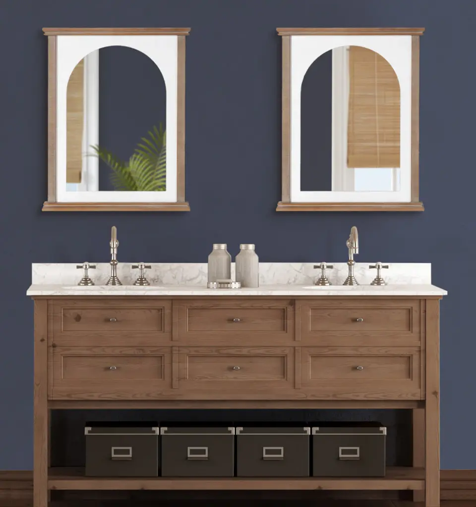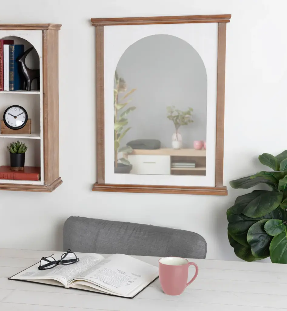 Brenna Wood Framed Arch Wall Mirror, Rustic Brown/white 22x28