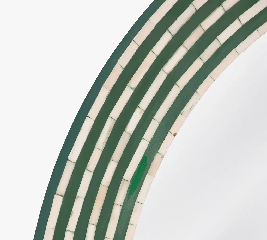 Handcrafted by skilled artisans, this mirror combines a pop of color with the ancient art of inlay. Green and natural bone tiles are carved, polished and arranged into an eye-catching striped pattern that lends a colorful accent to both modern and traditional spaces.