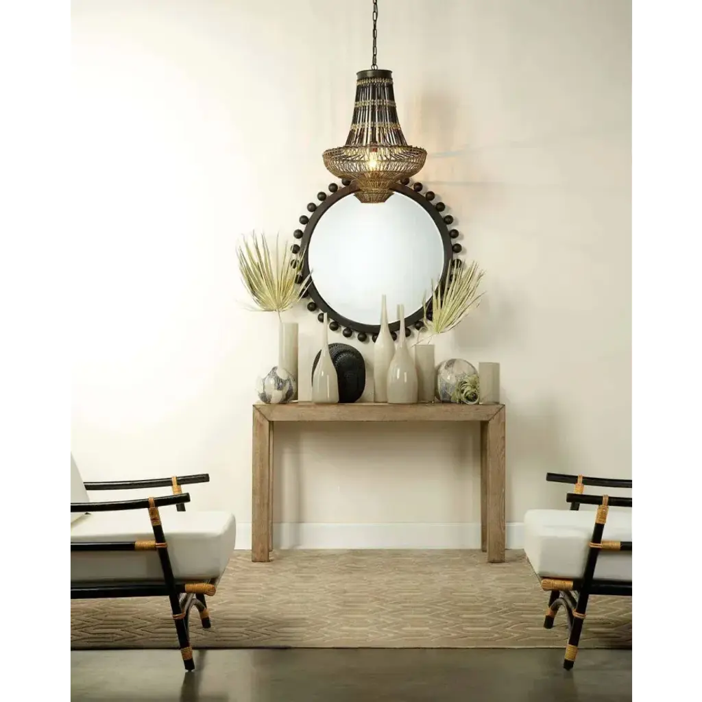 Instantly update the look of any room with this eye-catching accent mirror. Handmade by artisans out of wood, this mirror features hand-carved ornamental beads for an added touch of drama.