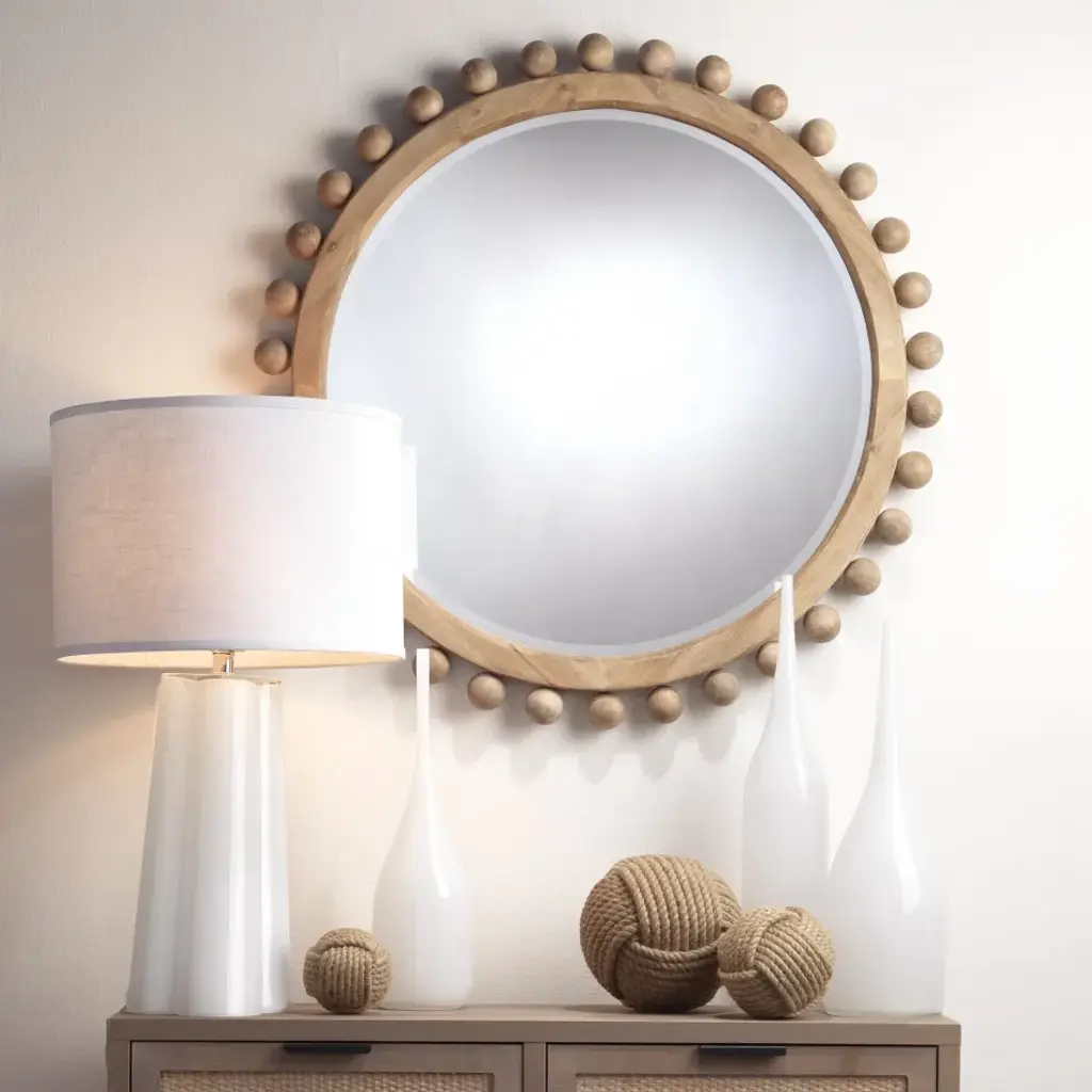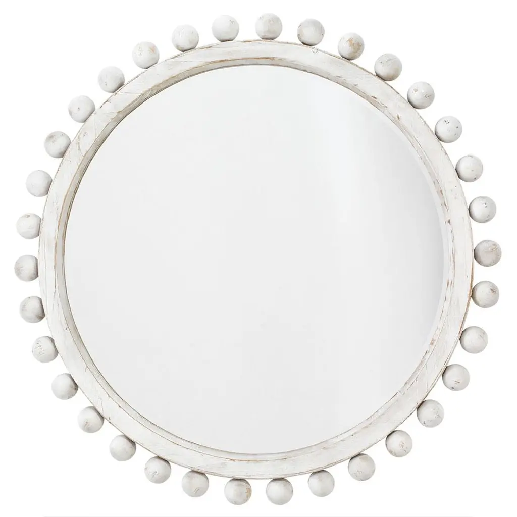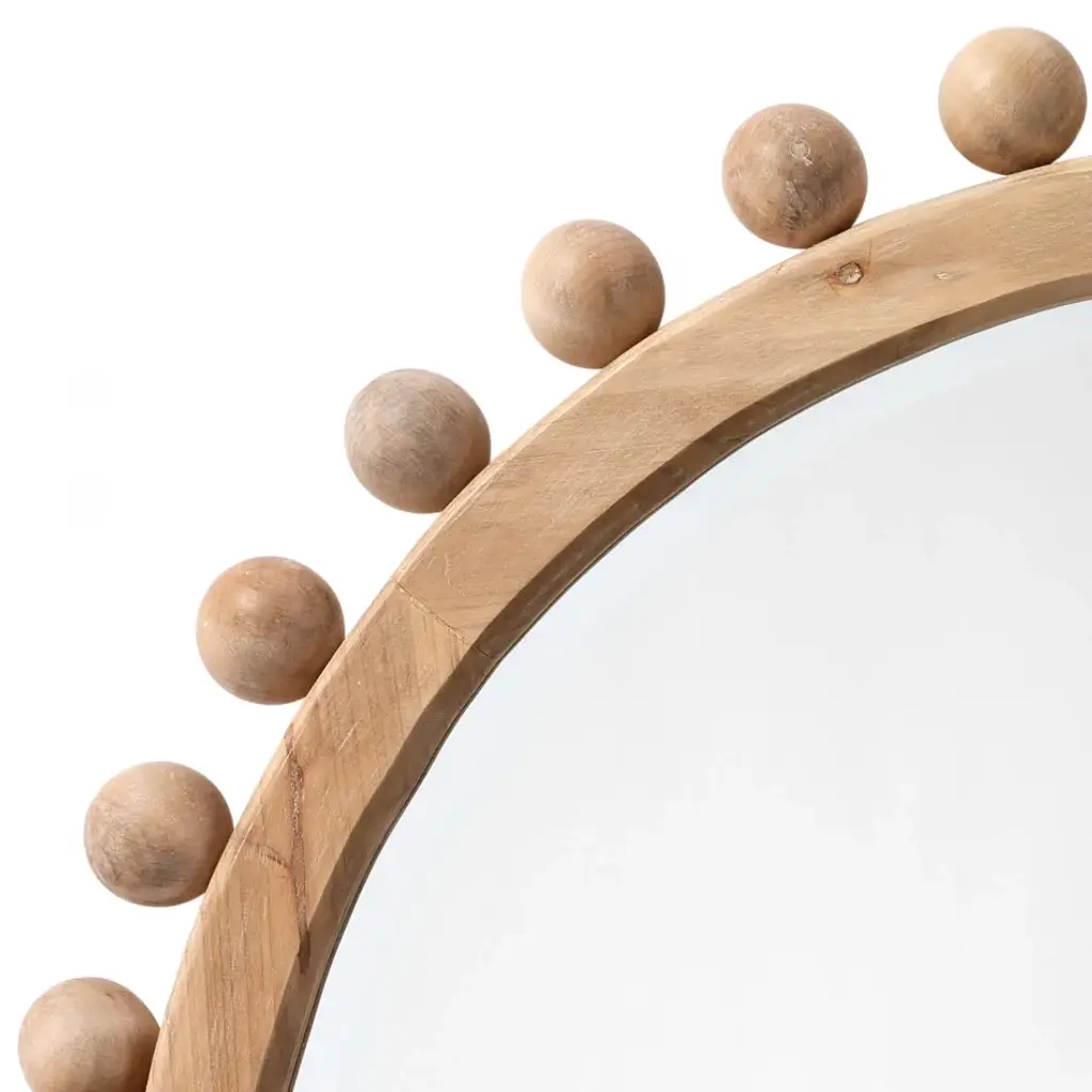 Instantly update the look of any room with this eye-catching accent mirror. Handmade by artisans out of wood, this mirror features hand-carved ornamental beads for an added touch of drama.