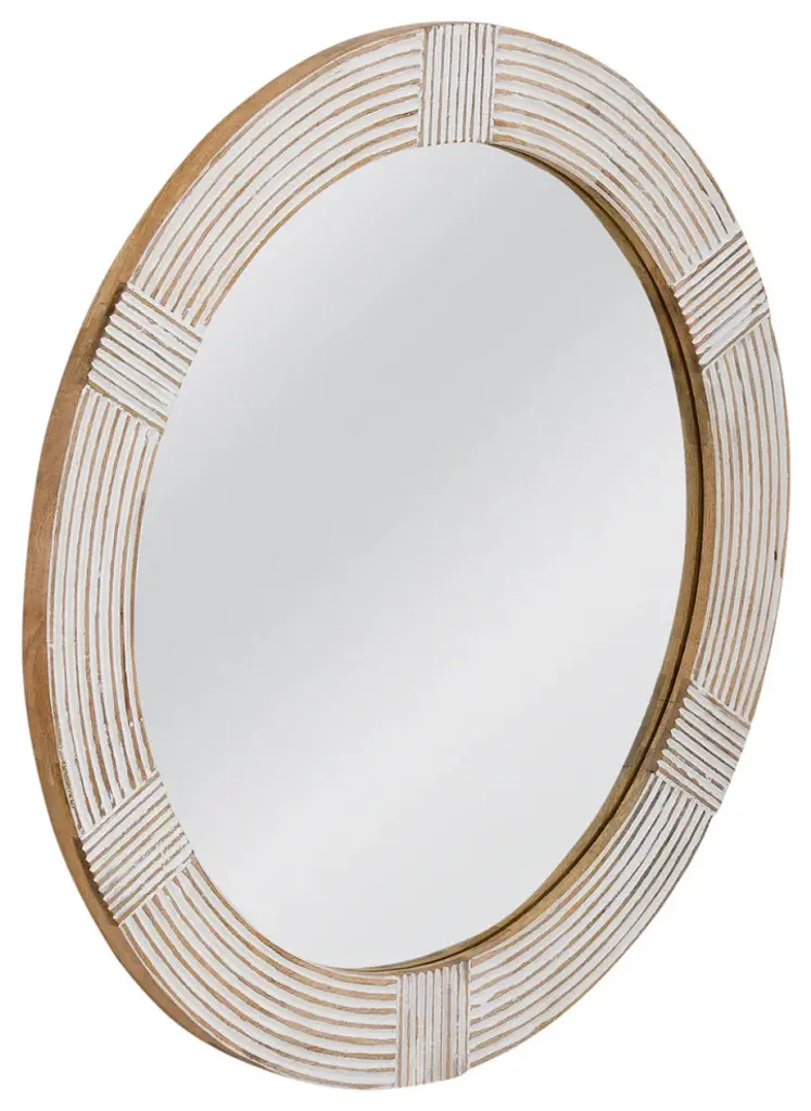 The Brockton Wall Mirror features a round carved wood frame, blending coastal design with boho aesthetics for a relaxed yet stylish look. The intricate carvings add texture and depth, making it a striking focal point in any room. Its natural wood tones and simple yet elegant design bring a touch of warmth and charm, seamlessly complementing various interior styles. The Brockton Wall Mirror is perfect for adding a coastal-inspired, bohemian flair to your home decor.Features:Modern coastal designCarved wood frame for a boho touchClassic round shape for timeless appealFor over a century, Bassett Mirror has been synonymous with style and quality, transforming homes with its sophisticated and timeless designs. With a wide-ranging collection of furniture, lighting, mirrors, and art, Bassett Mirror seamlessly blends modern style with classic appeal. From rustic modern to luxe glam, each piece is thoughtfully crafted to inspire and elevate any space. Committed to exceptional value and customer care, Bassett Mirror makes it easy for homeowners to create beautiful, personalized interiors with confidence.