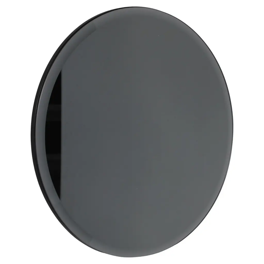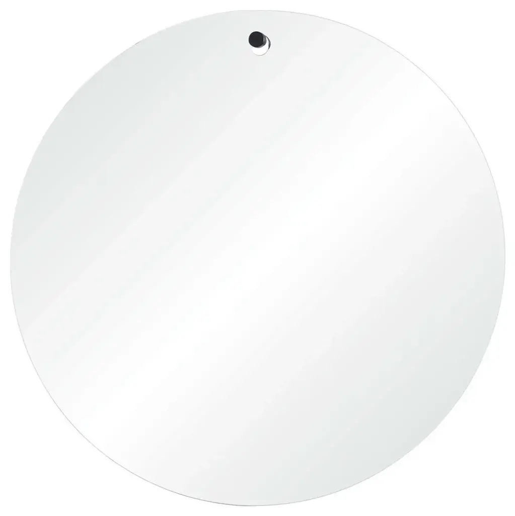 Take a moment to reflect in the all-glass design of this decorative wall mirror. The unframed silhouette makes the most of the mirrors round shape, with small black hanging hardware that emphasizes the mirrors shapely simplicity. Add this circular mirror to any wall in need of a modern moment.Hardware Included: Yes