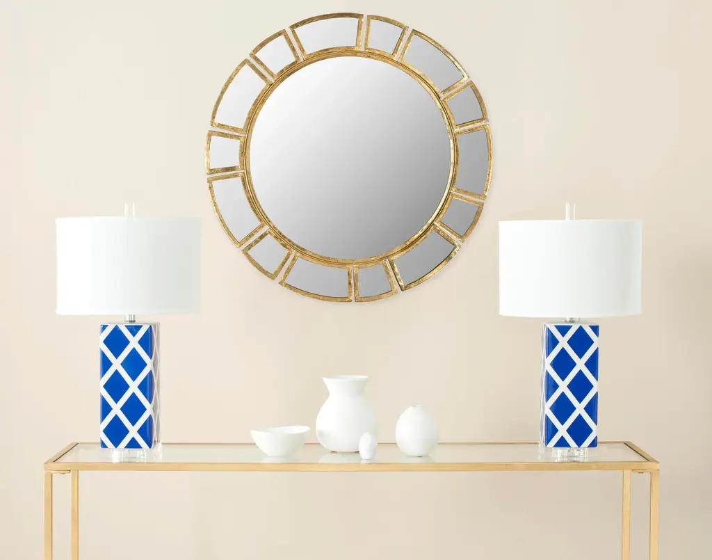 a but understated reflection on Art Deco style, the Deco Sunburst mirror will enlighten any interior it inhabits. a artisan-forged iron frame is treated to a antique gold patina to finish a design that is both fashionable and timeless. Dust with a soft, dry cloth. Do not use abrasive cleaner. To clean mirror, spray a small amount of glass cleaner onto a lint-free cloth and wipe mirror clean.