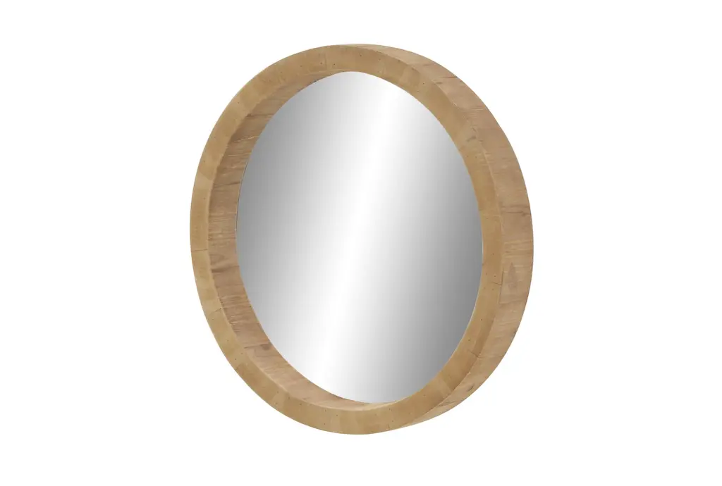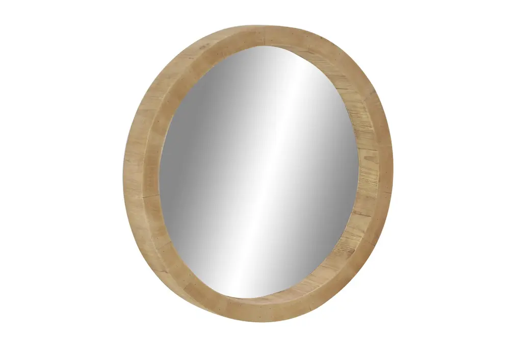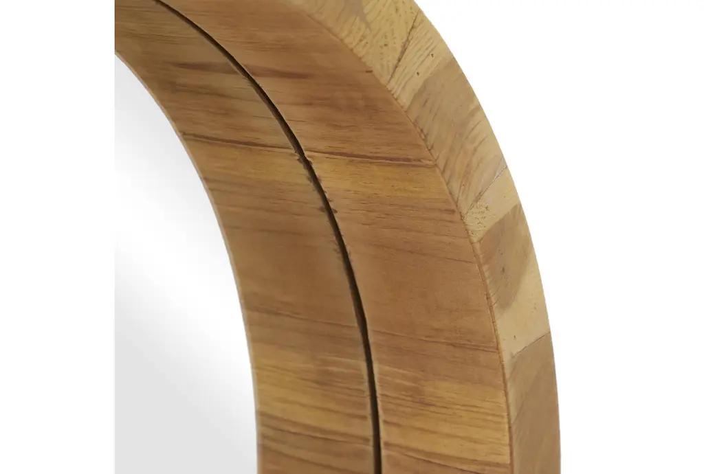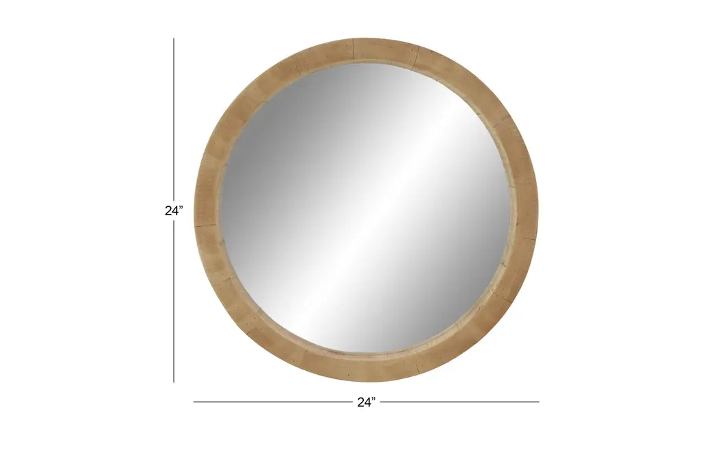 Brown Round Curved 24 Inch Wood Wall Mirror