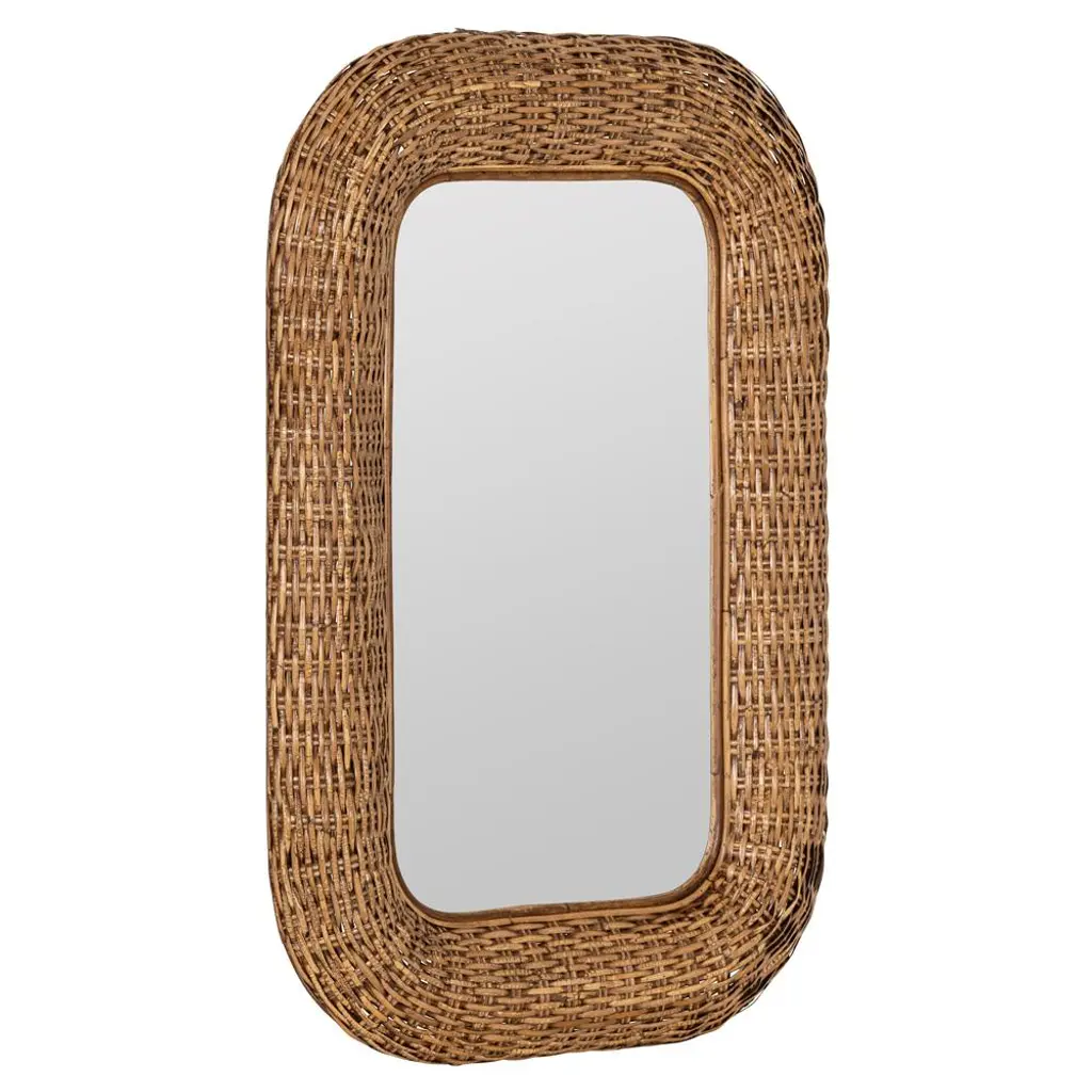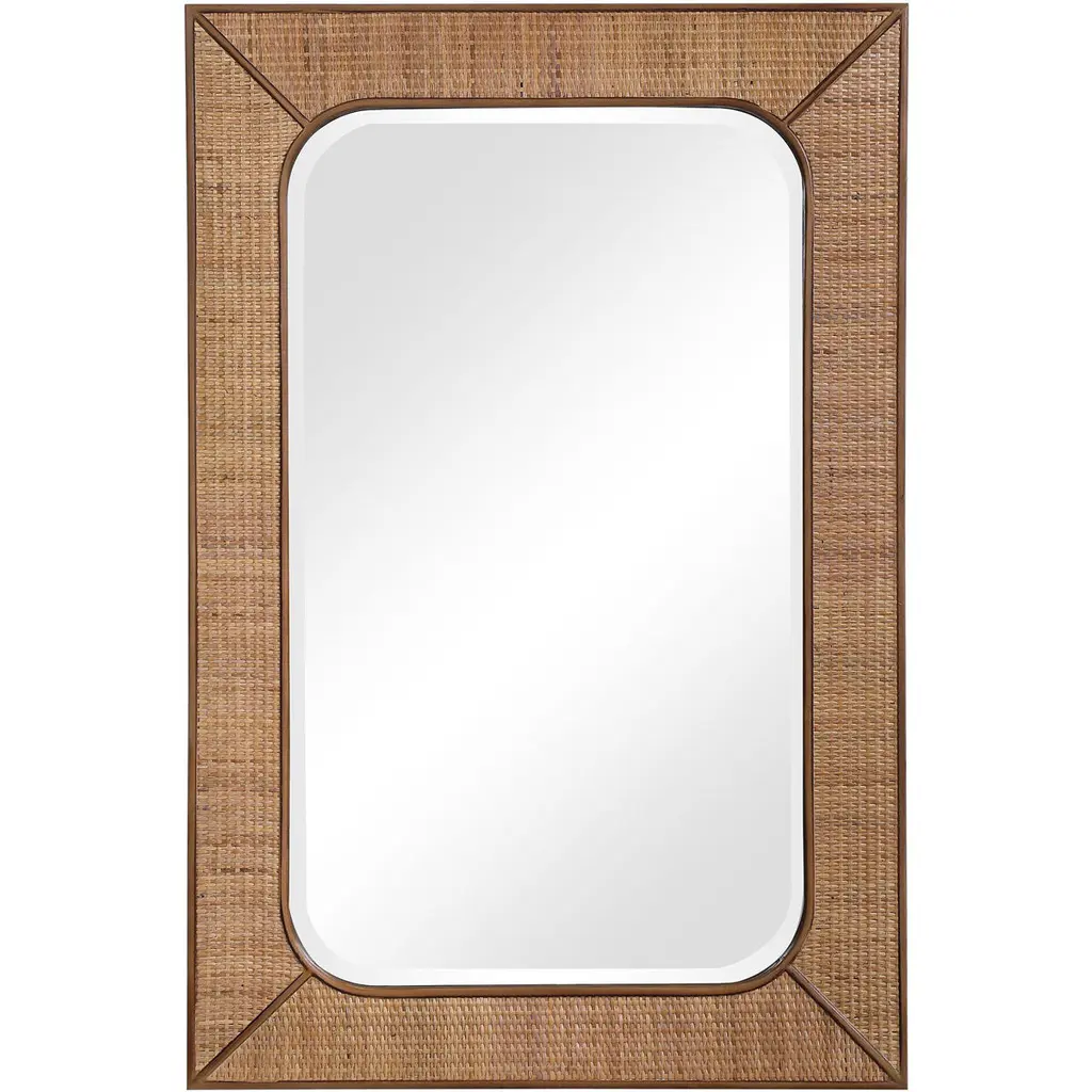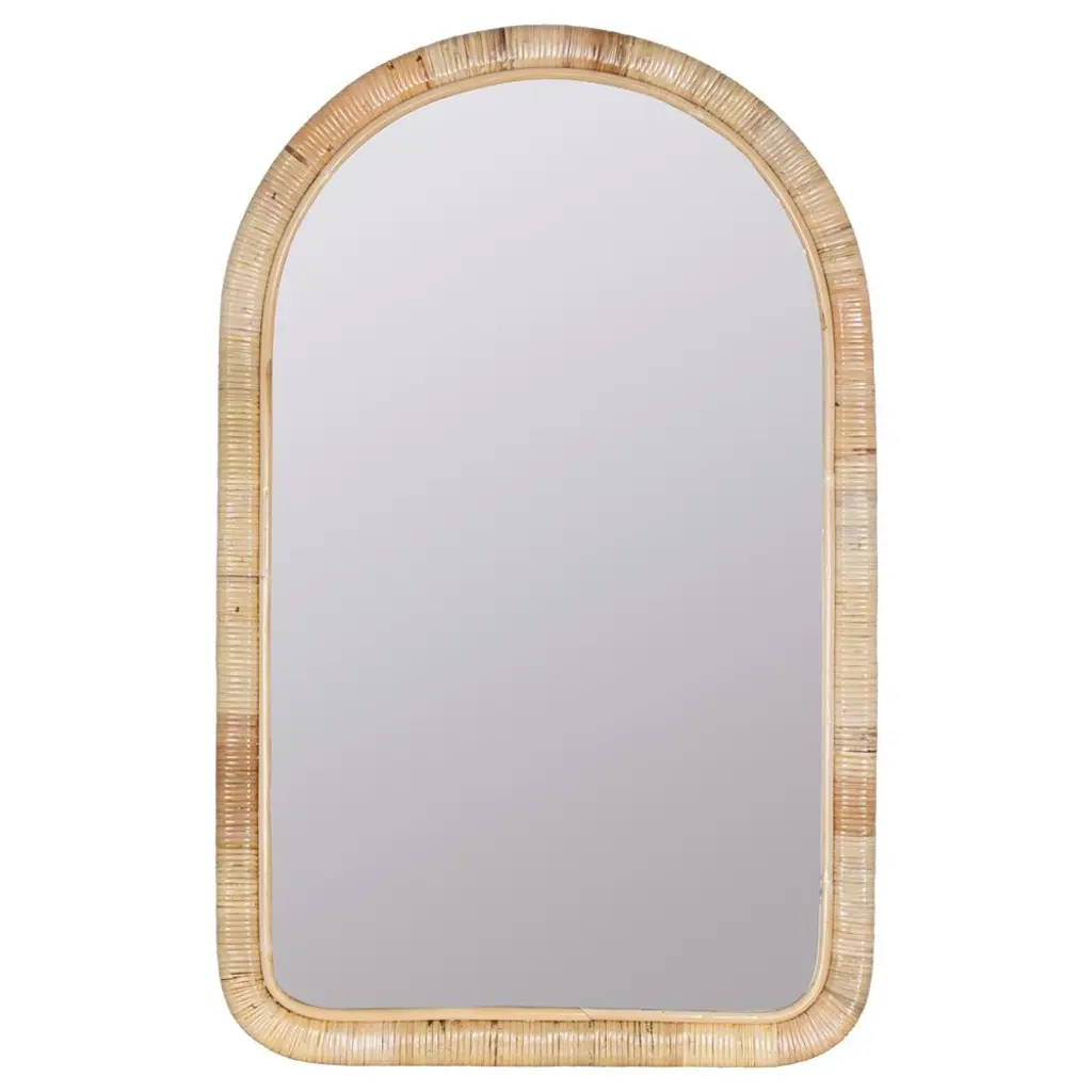 Brynlee Coastal Beach Natural Woven Rattan Frame Wall Mirror