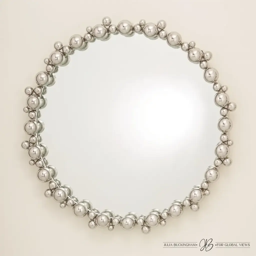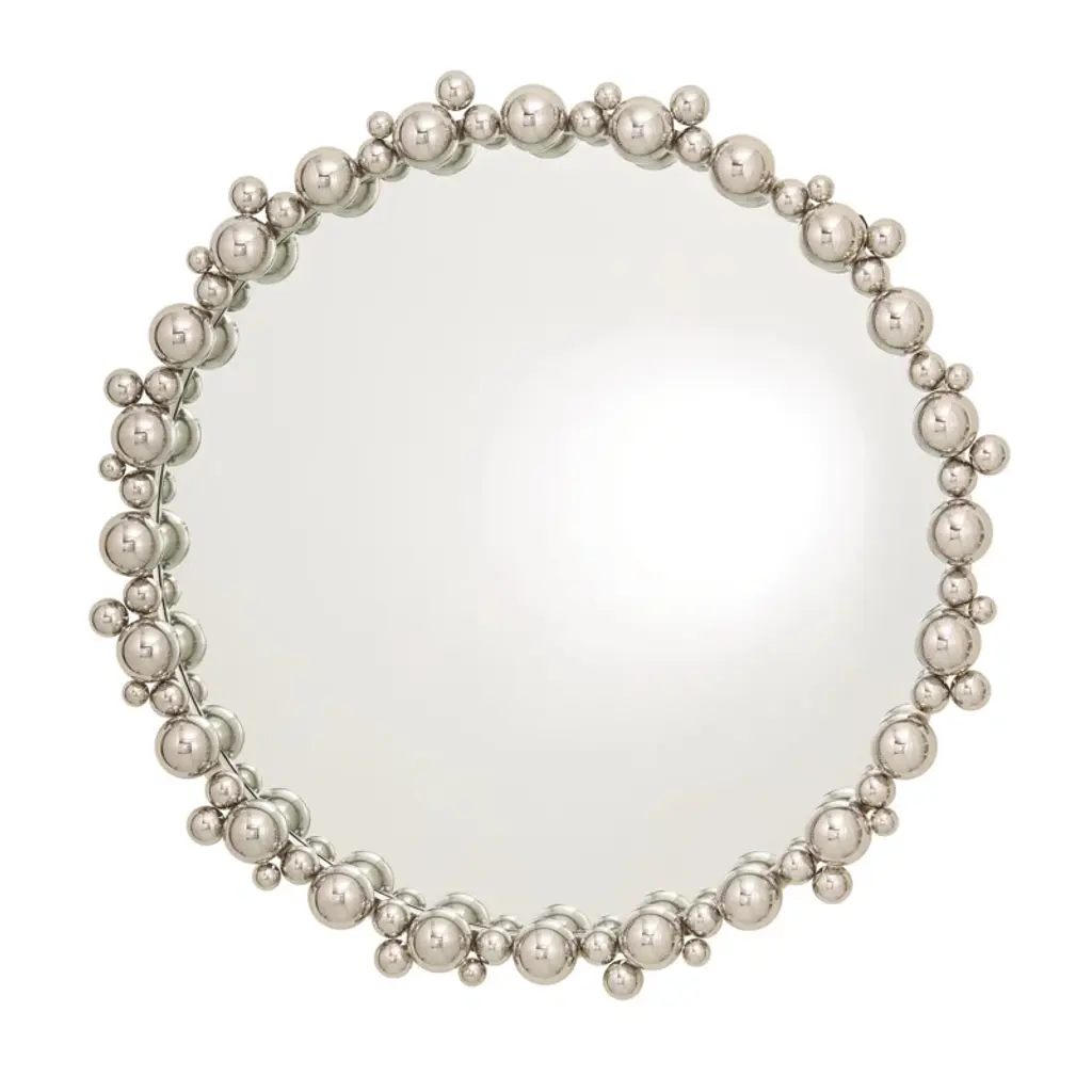 Playful and contemporary, this round mirror is embellished with a dimensional bubble frame and nickel finish.