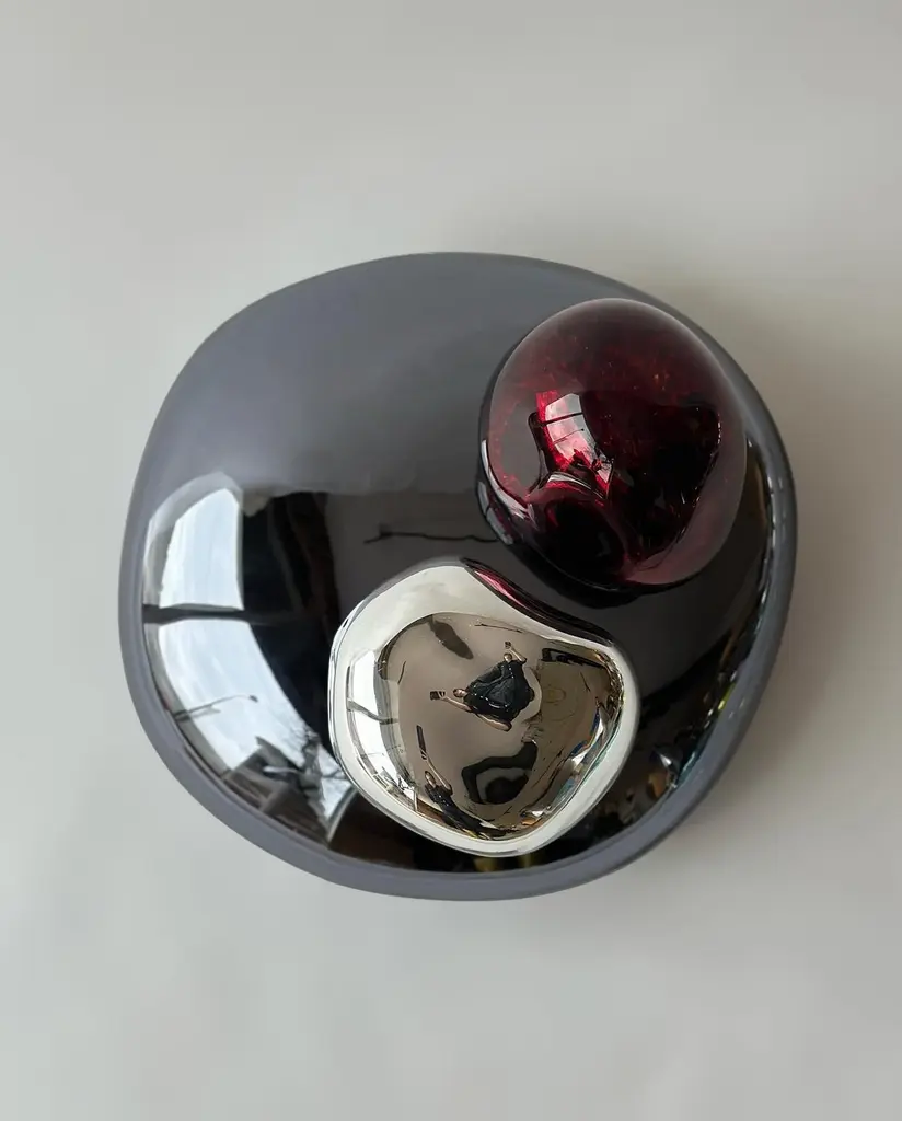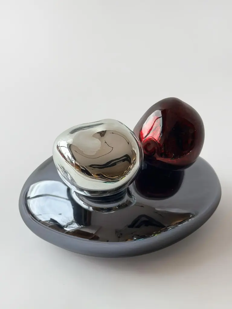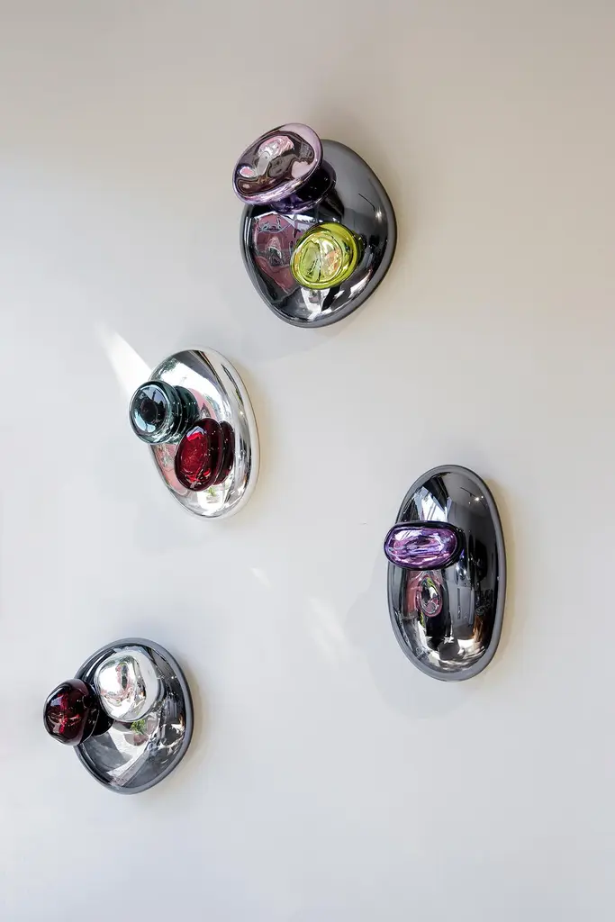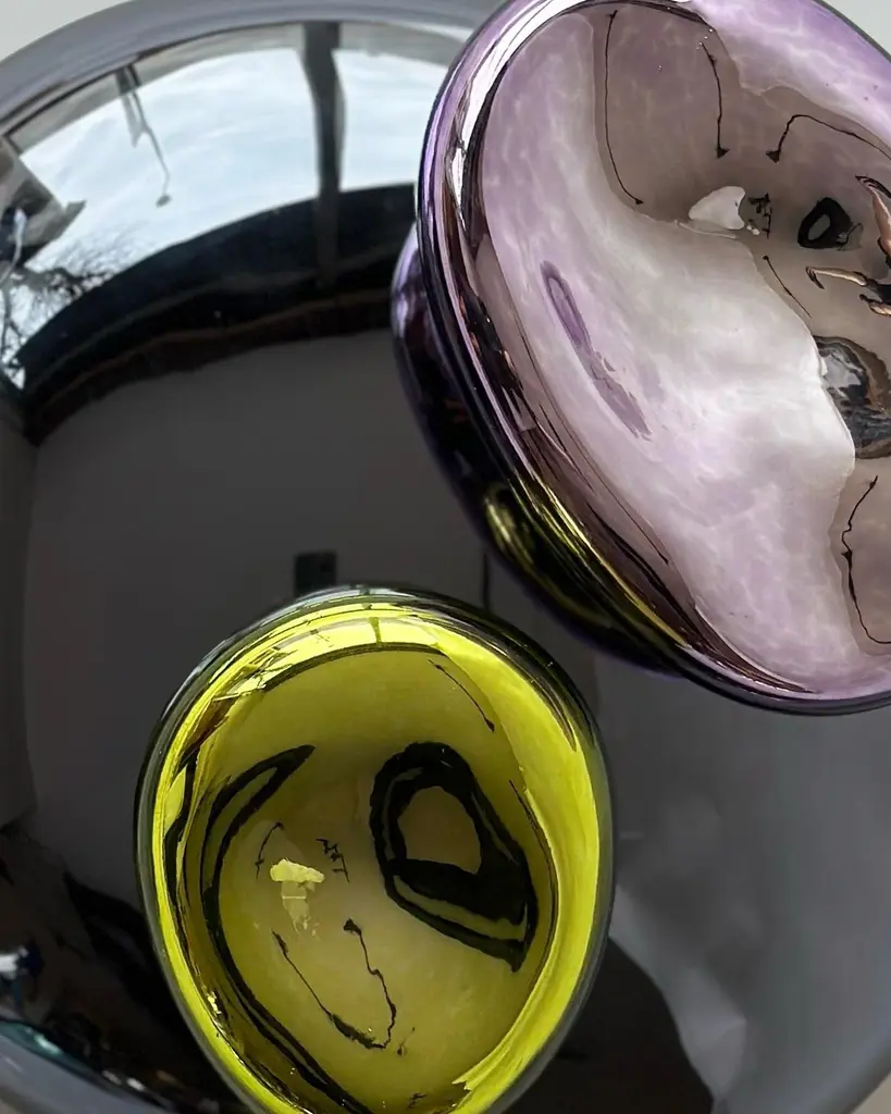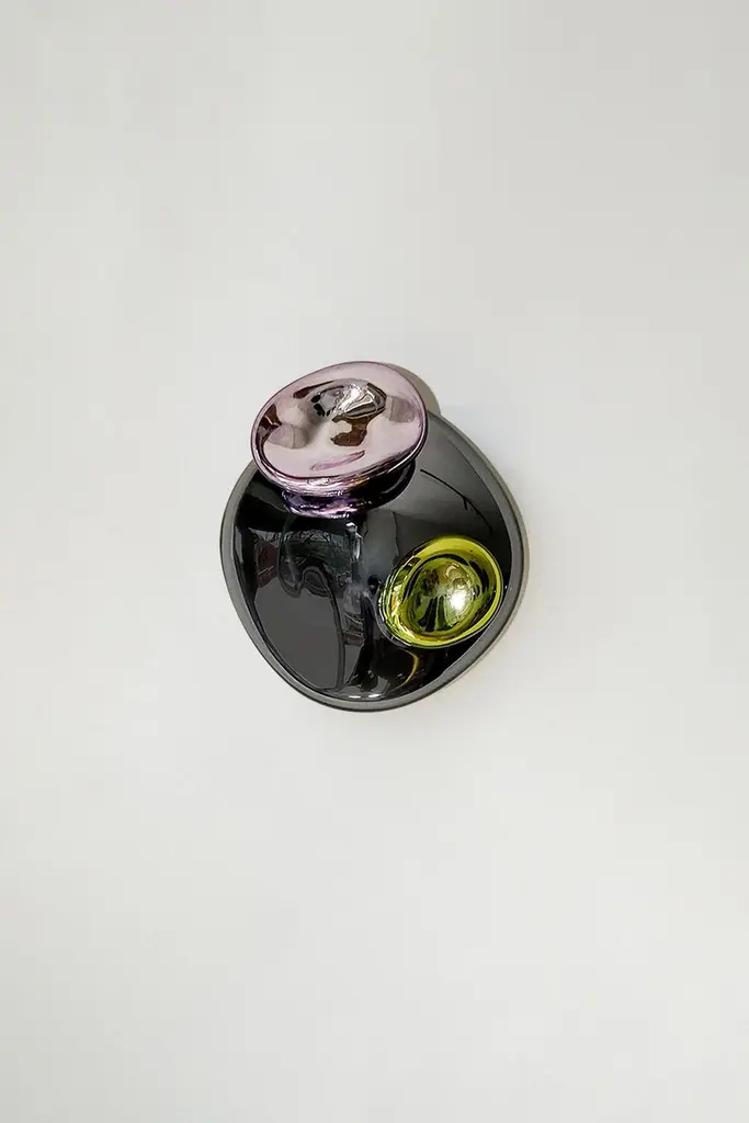 Bud II Sculptural Handblown Glass Smoke, Purple and Lime Mirror by HomaDimensions: W 40 x D 40 x H 21 cmMaterials: Blown Glass. Silver Mirror. Smoke Mirror.HOMA is a contemporary design atelier based in Istanbul. The atelier’s trademark processes are handblown glass, glass fusing and mirroring, created through the use of multidisciplinary techniques and materials. Over time, with meticulous research and experimentation HOMA has acquired unique expertise in mirrors, lighting and home interior objects thus elevating things of function to the status of art. Handcraft HOMA has discovered one of the last remaining masters of handcrafted mirroring in the Eastern Mediterranean. The atelier is original in its simultaneous use of different techniques to create organic and flowing mirror shapes. Each piece celebrates reflection, translucency, movement, light, time, multiple layering and aesthetic, spontaneity…Object HOMA’s pieces are an exploration of organic, abstract, as well as unexpected flowing lines and shapes. Our design service offer is presented in a catalogue of over 50 designs in fluid and geometric shapes achieved through multidisciplinary techniques.Materiality Through the use of mixed textures and the layering of mirror elements unexpected effects are created on glass, which play with one’s visual perception as well as the surrounding space. Glass, stone, marble, messing mirror techniques, bronze, wood and clay are just some of the Earth’s materials that find their way into HOMA’S offerings. HOMA offers a vast materials library.Architecture Formally trained in interior architecture, HOMA founder, Tuğba Koç has transformed her knowledge and experience into layered aesthetic design objects. Now, with a team of architects and artisans, Tuğba applies her hands in a workshop environment on interior and exterior objects to enrich earth-derived, breathing, living materials. HOMA’s interior objects are informed by art and driven by the philosophy that nothing artificial should be allowed to interfere with the energy of one’s living environment.