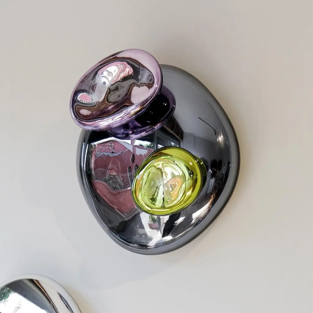 Bud Ii Sculptural Handblown Glass Smoke, Purple And Lime Mirror By Homa