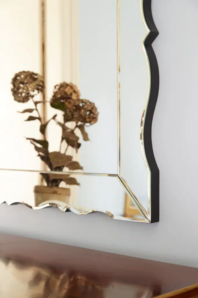 This elegant mirror designed by Bunny Williams for Mirror Home, and will add the wow factor you have been looking for. Featuring a non-beveled center, this mirror framed mirror is surrounded by hand cut and beveled mirrors. Place this mirror in a bedroom, entryway, living room, or anywhere you please. It's just what your home needs to bring style into your life.