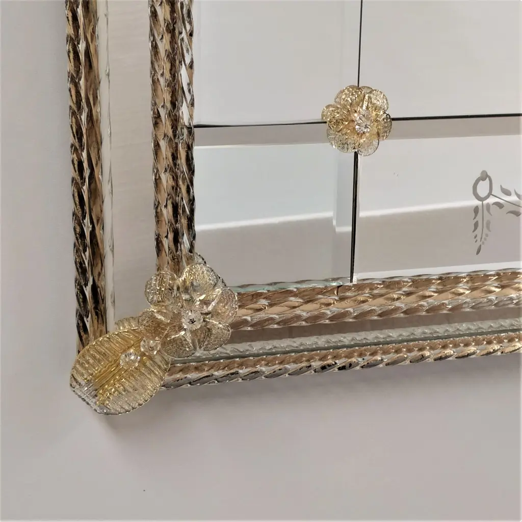 "Ca' Bernardo" Murano Glass Mirror In Venetian Style, Hand Made Made In Italy
