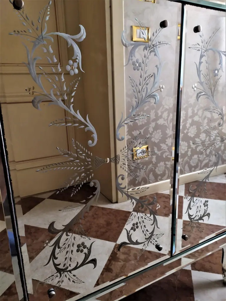 "Ca' Corner" Luxurious Sideboard In Murano Glass Mirror By Fratelli Tosi