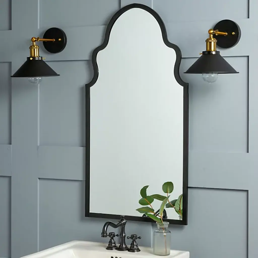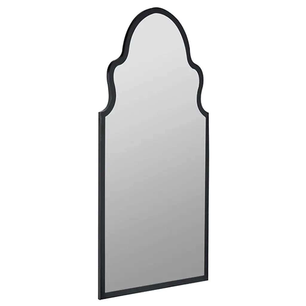 Make a statement with the Cadence Wall Mirror from Cooper Classics, where contemporary character meets bold design. The dark metal frame contrasts with the reflector and transitions from sharp, blocky lower corners to graceful curves above, creating a distinctive silhouette. This mirror is designed for vertical mounting and combines modern sophistication with easy D-ring installation.