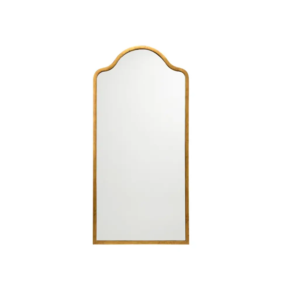 The Cadenza Mirror is a gorgeous design statement with a minimal silhouette that blends with a variety of design styles. Crafted from beech wood, the slender frame in a Gold Coast finish showcases straight angles at the bottom and culminates in a rippled arch at the top. Beveled glass housed within the frame contributes a sense of depth, completing the look. This piece is affixed with French cleats and displayed in a vertical orientation.
