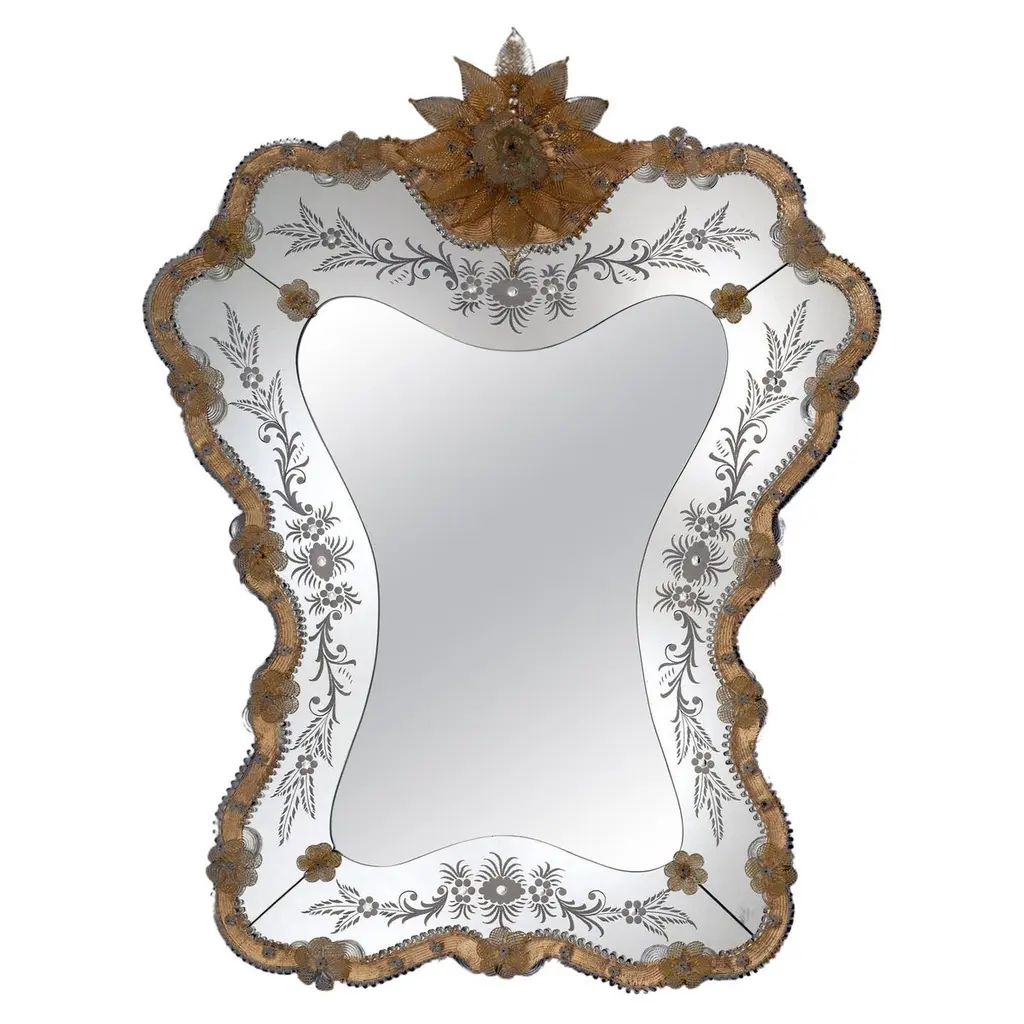"Ca'favretto" Murano Glass Mirror In Venetian Style, By Fratelli Tosi Murano