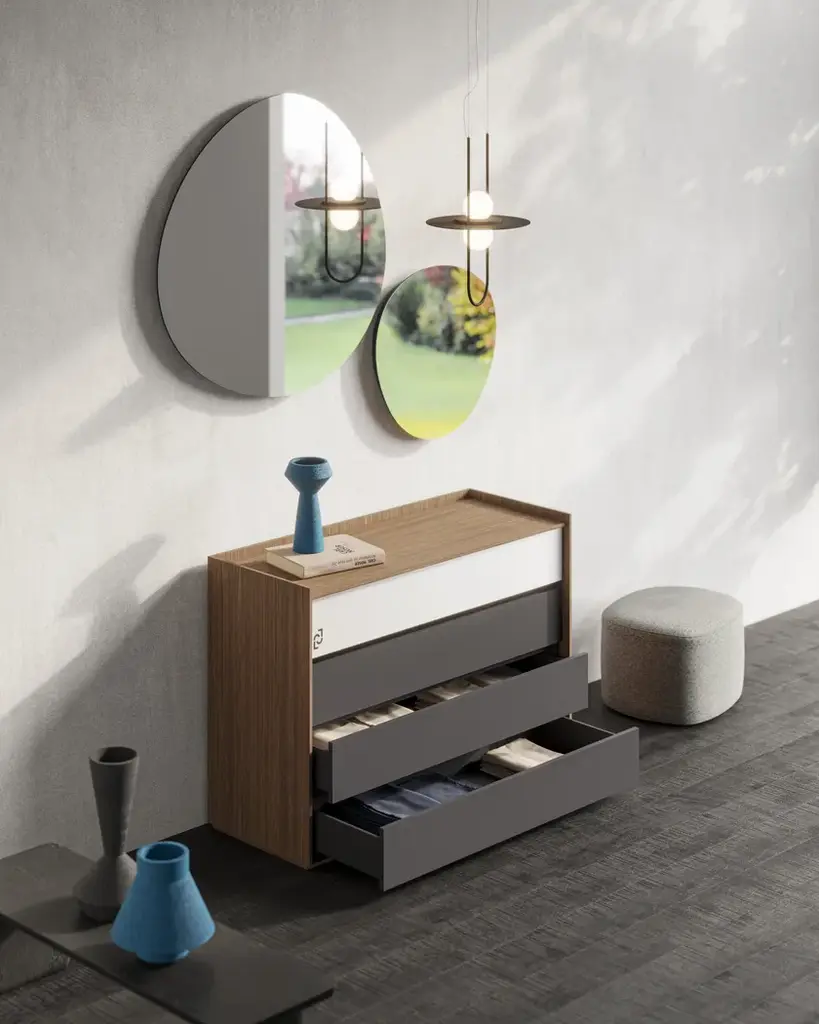 The Caillou mirrors thought in three dimensions, evoke the drops of rain, never equal to each other.Their combination creates a functional and aesthetic triptych but at the same time, each element taken individually can give character to even the most minimal environments.Mirror: irregular shaped with polished edgeSupport: thickness 30 mm black, n.4 hooks for wall hangingFrom the creative vision of Liu Jo was born the custom-made living room. Craftsmanship, versatility, style and sustainability come together to enter the world of home and transform the furniture. Liujo’s living collection is a declaration of intent: new forms and customizable materials open the space to new reading keys and give life to unique pieces. The house is dressed and changed to meet all the needs of everyday life detaching from the classic nomenclatures and running on elegant lines, delicate finishes, soft fabrics and customizable colors. Not only sofas, poufs or armchairs, but design with a strong identity, free, sectional and removable, with irregular and fresh shapes that revolutionize the environment. Recognizable and iconographic in ideas, shape and finish, the pieces of furniture by Liu Jo find their reason for being in contrast: structures and rigid elements are designed to contain and embrace curves and movements, enhancing personal style and easily changing position and function.