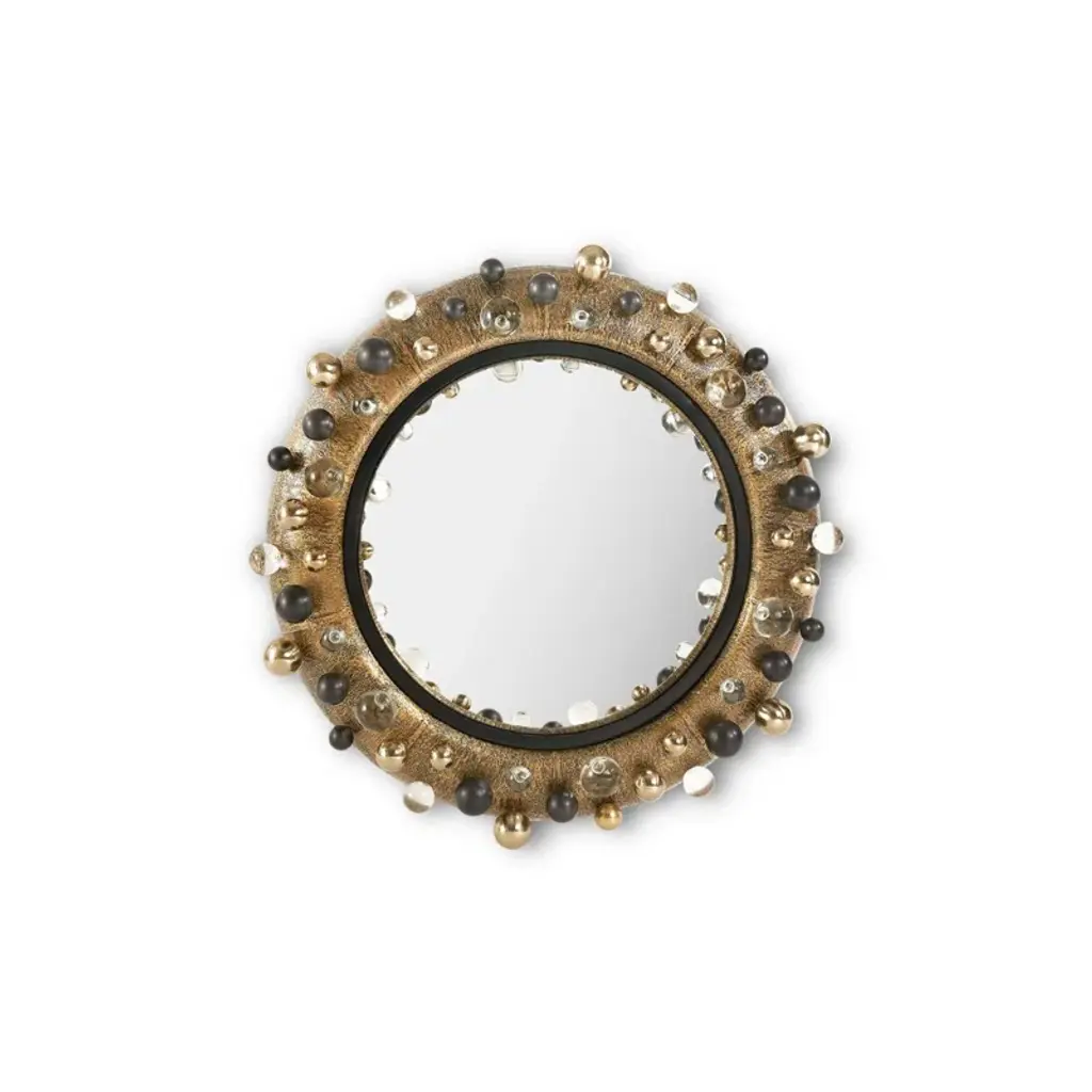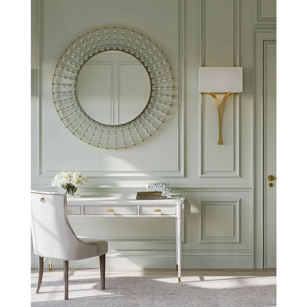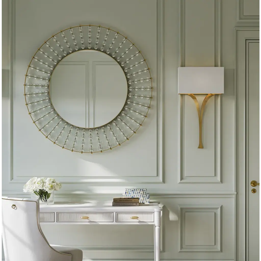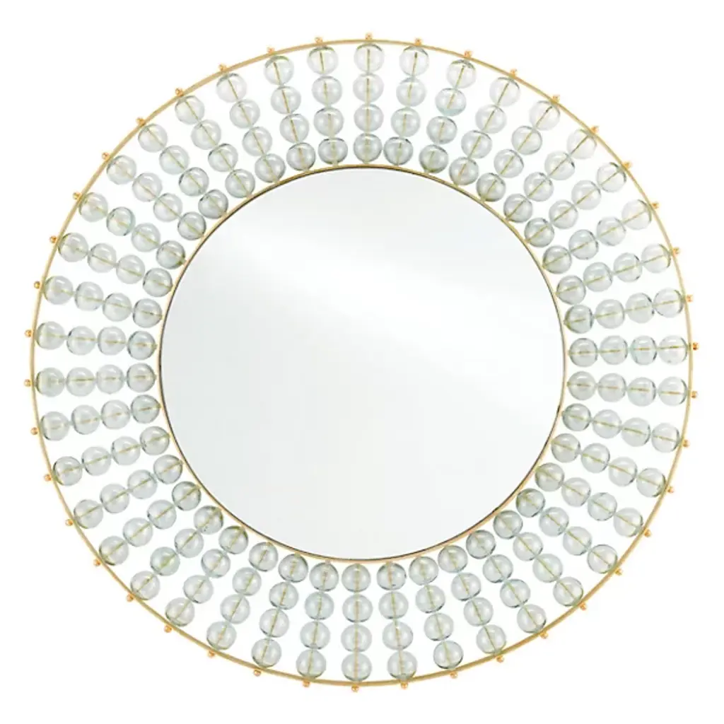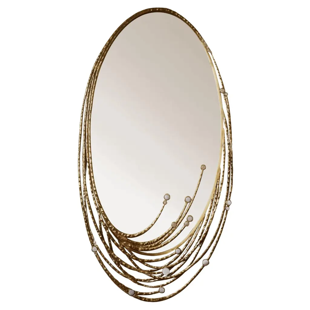 This softly shaped antique brass wire mirror has an elegant yet organic feel making it the perfect wall piece to hang over Gunther Credenza. The delicate undulating frame surrounds a beveled mirror. Features a security cleat attachment.