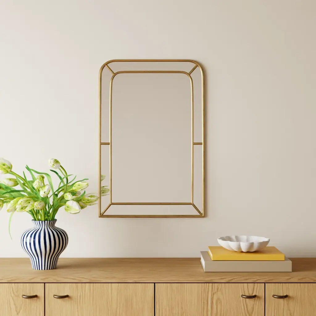 Elevate your home's décor with this classic wall-mounted accent mirror. Featuring a closed-corner frame made from engineered wood, it adds a touch of elegance to any room. The vertical orientation makes it perfect for checking your reflection or simply adding depth to your space. Designed by Uniek, Inc, this flat-shaped mirror is a timeless piece that complements a variety of styles. Ideal for residential use, it's a versatile addition to your home that brings warmth and sophistication.