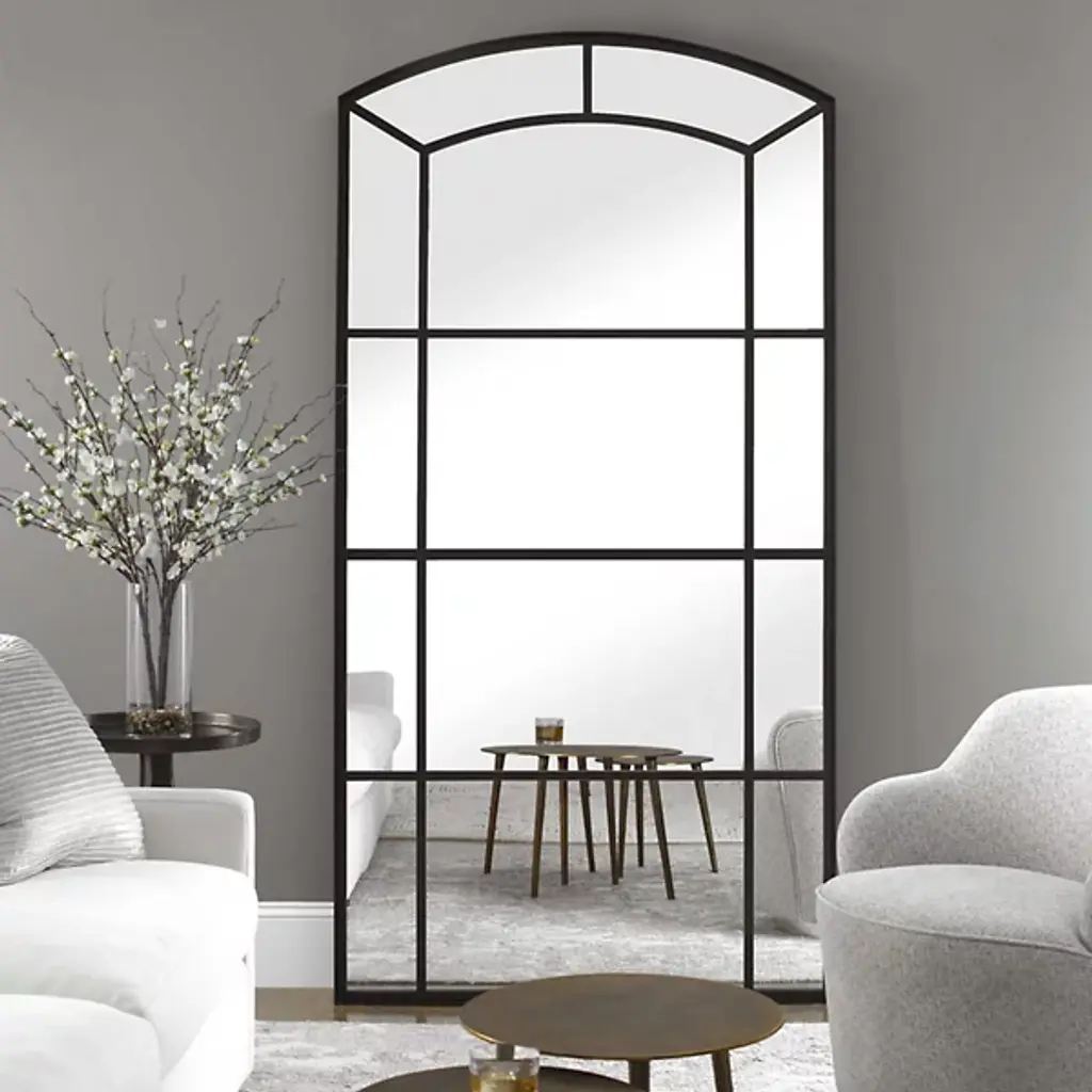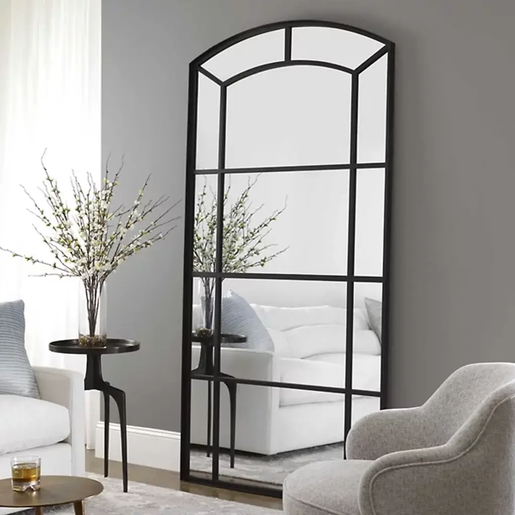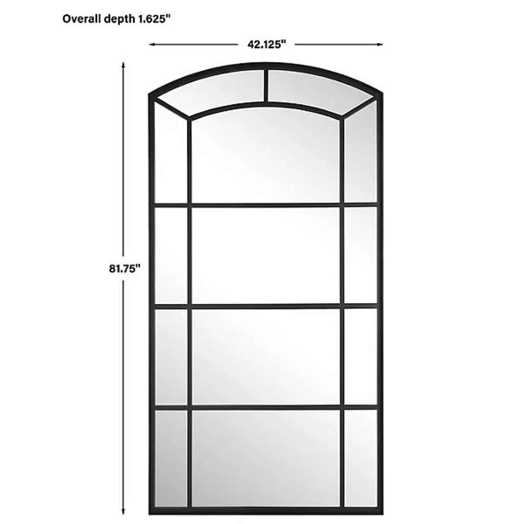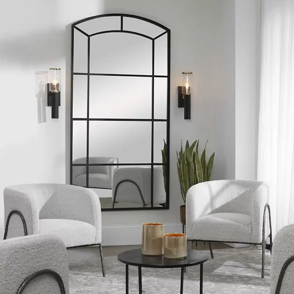 The Camber Arch Mirror by Uttermost is a statement-making addition to rooms from designer Grace Feyock. With an oversized build, the simple, recognizable arched silhouette of this piece is elevated with a bold, iron frame that neatly breaks up the mirror within. Reminiscent of window panes, the divided, geometric look of this design adds a cool touch to spaces. Leaned against the wall or hung up, this handsome mirror is at home in a range of rooms.