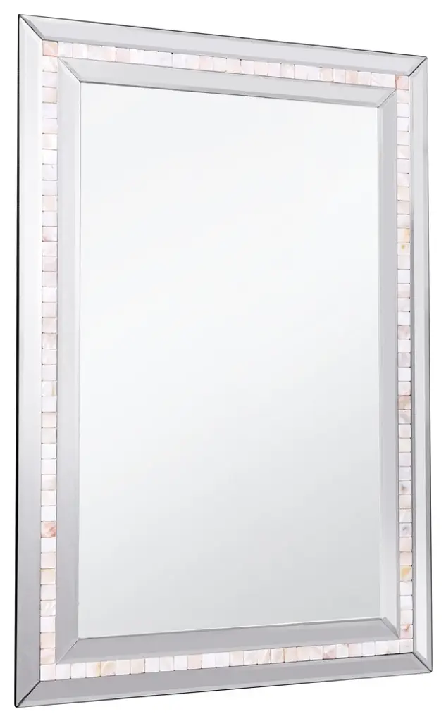 Camden Isle Mosaic Tiled Frame Mirror Mosaic Tiled Frame Mirror by Camden Isle The Mosaic Tiled Frame Mirror has an elegant frame with beautiful mosaic tiling that elevates the decor of a room. It is the perfect size to hang in a hallway or entryway, and can help make an entranceway or bedroom look more inviting. Transform an empty wall easily by putting up this mirror. A beveled 24 x 36 mirror with a quality silver backing that is ready to hang either vertically or horizontally with pre-attached hanging mounts