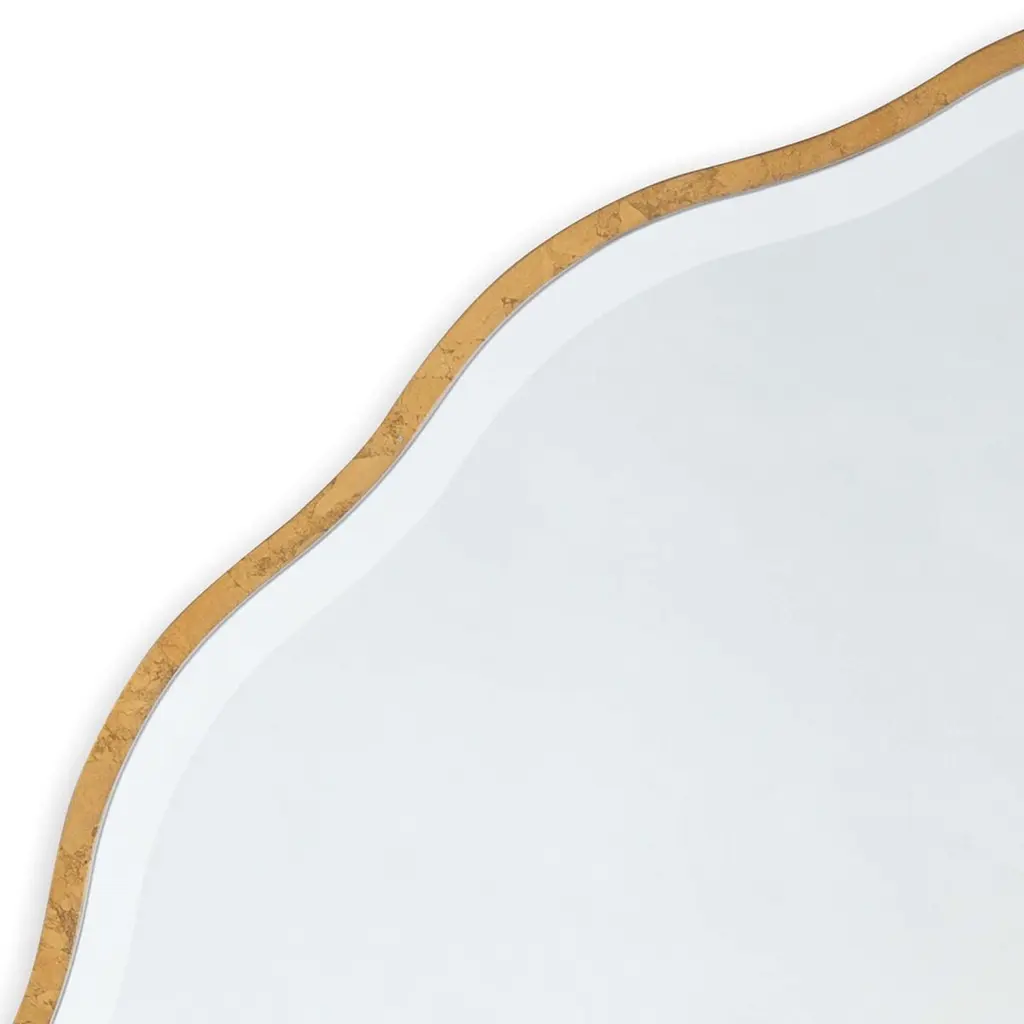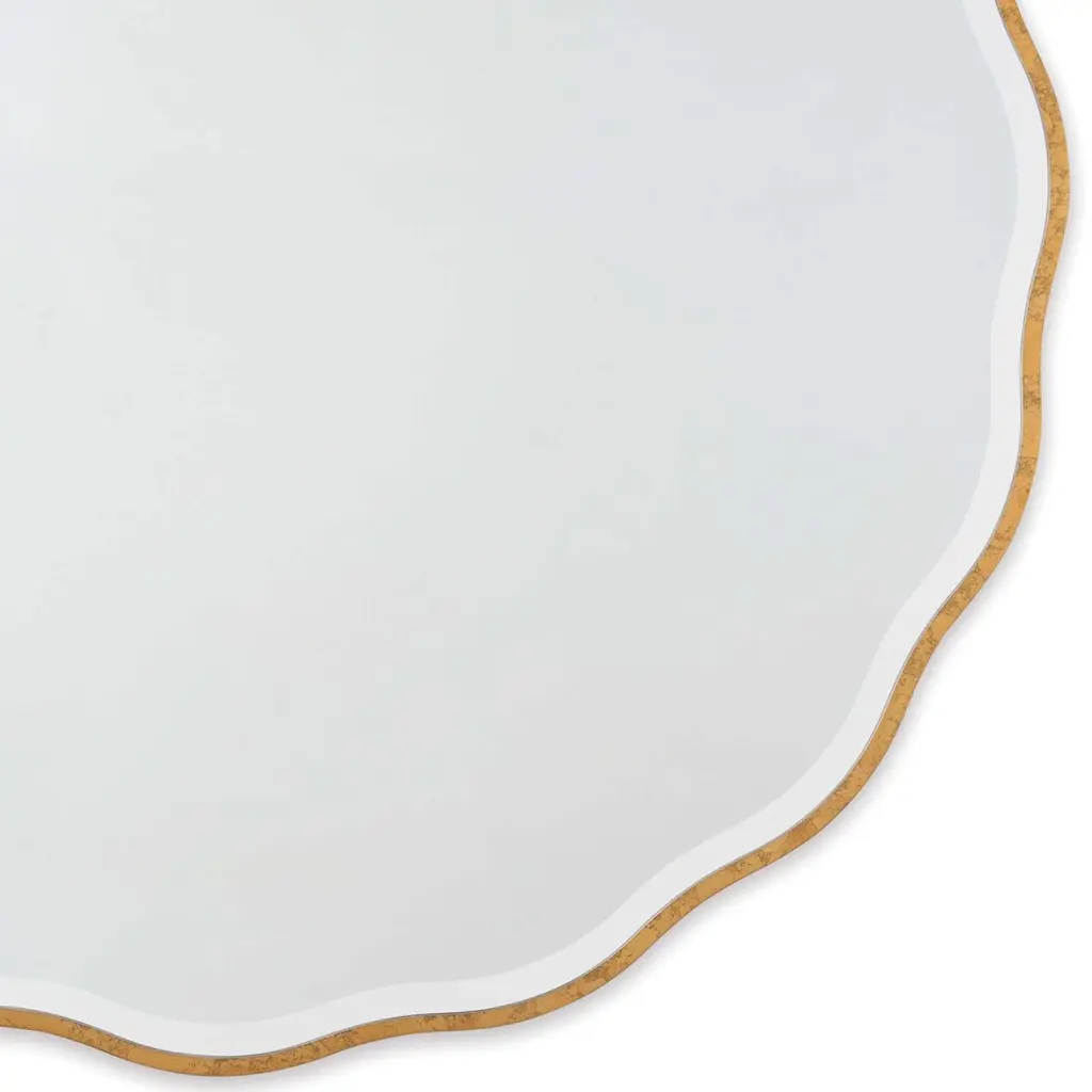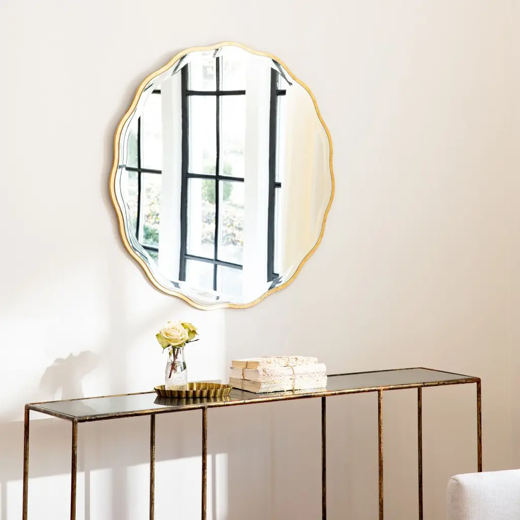 The gilded frame adds time-honored elegance to this mirror's undulating, daisylike shape. So does the beveling of the mirror itself.