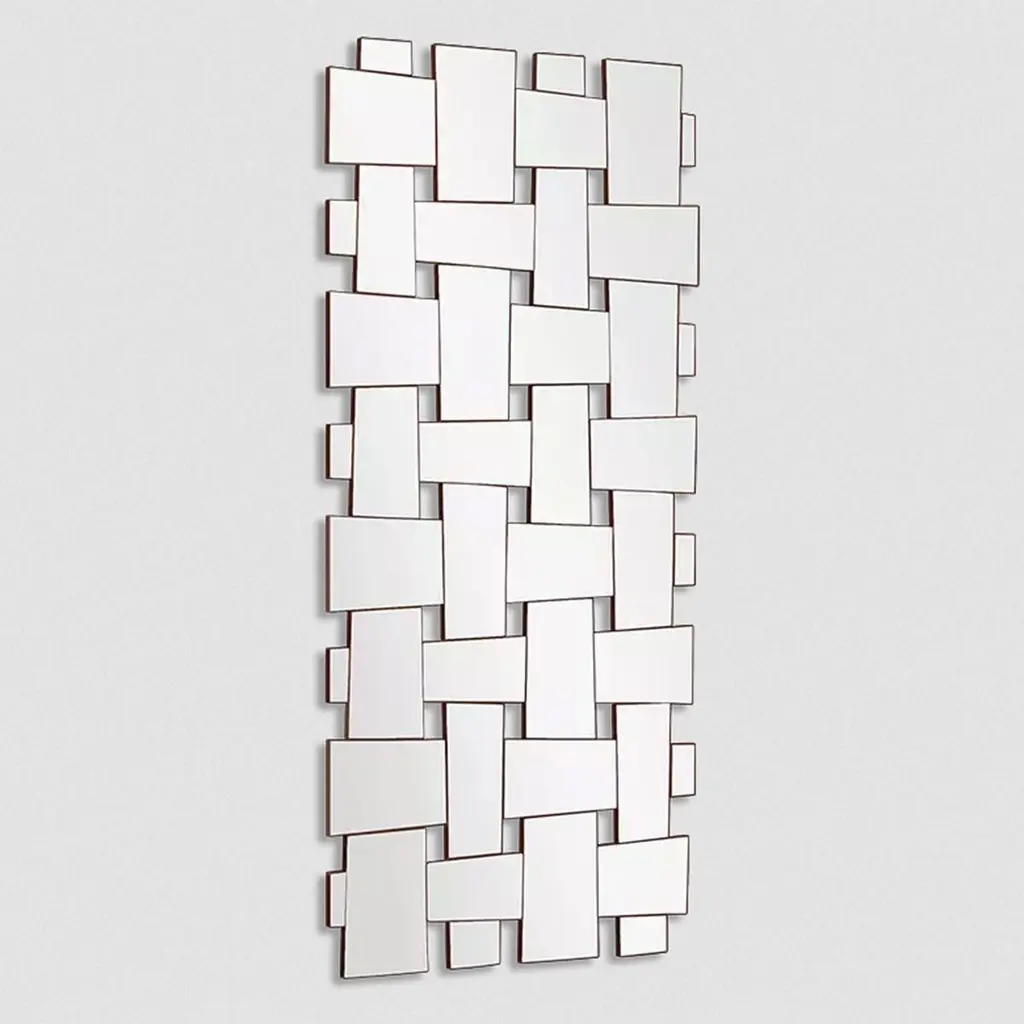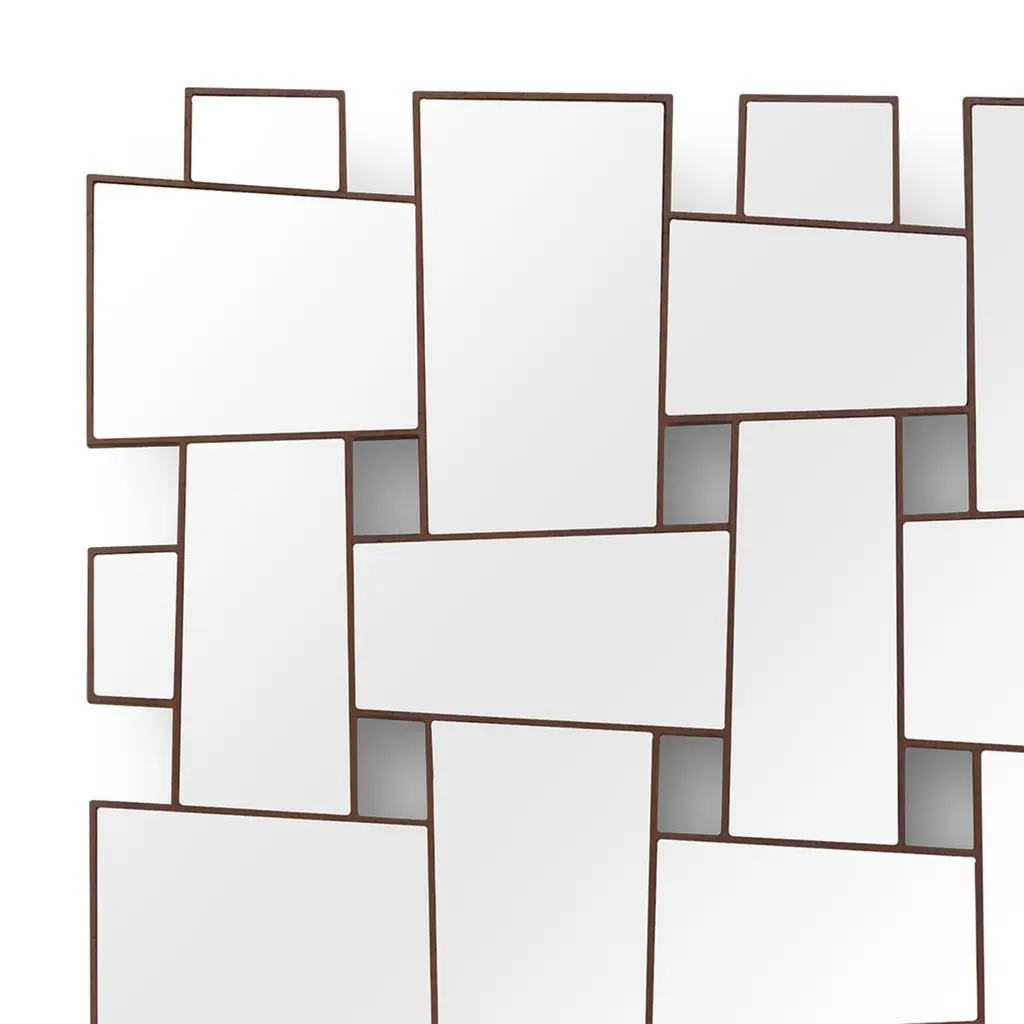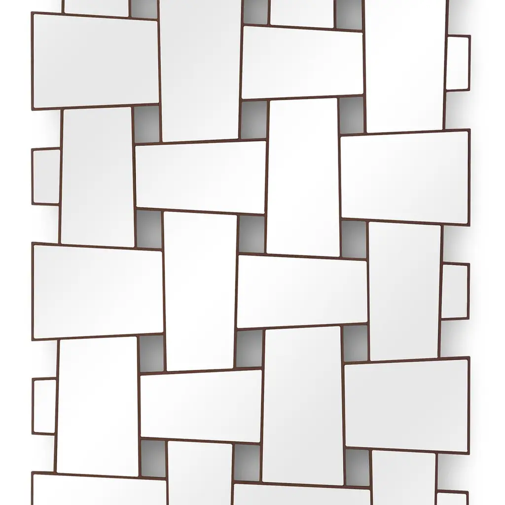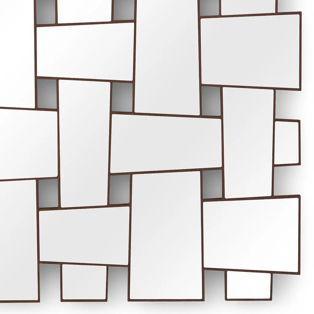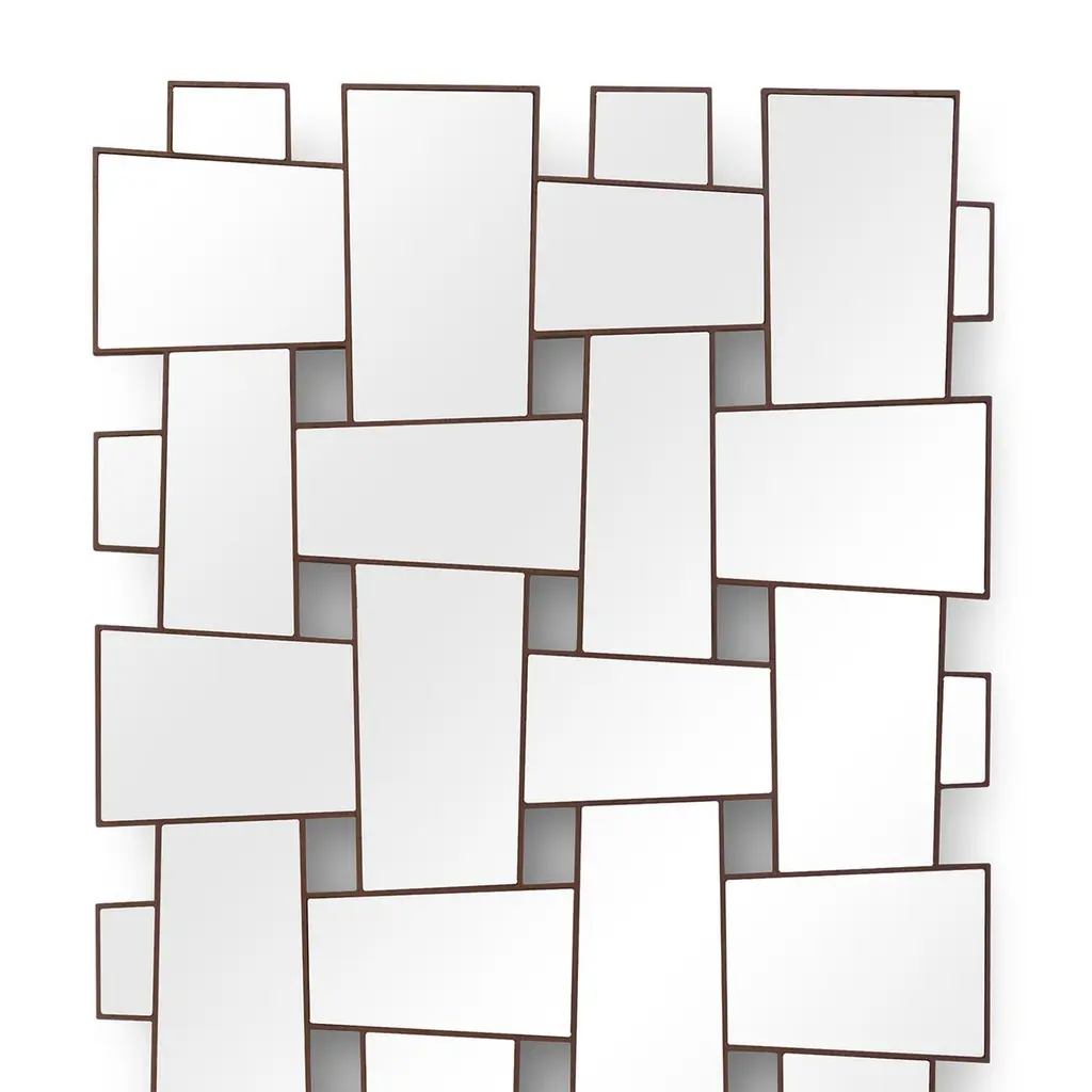 Mirror Canvas High with frame structure in handcraftedsolid mahogany wood in tobacco finish. Mirrors with beveled edges.