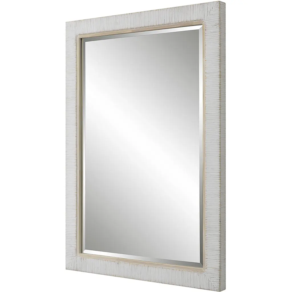 Based Upon Coastal Styling, This Rectangular Mirror Features A Whitewashed Rattan Wrapped Frame With A Solid Oak Inner Liner And A Generous 1 1/4" Bevel. May Be Hung Horizontal Or Vertical.