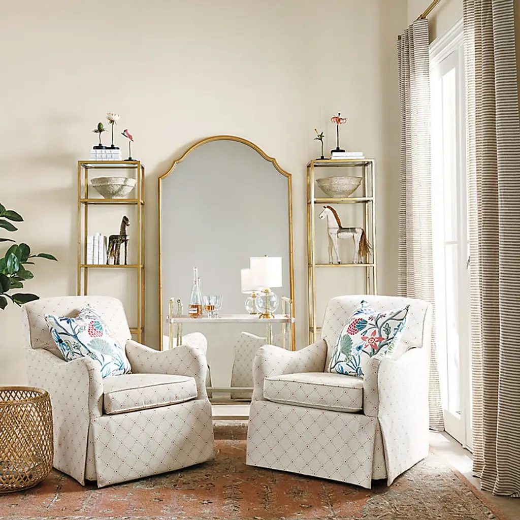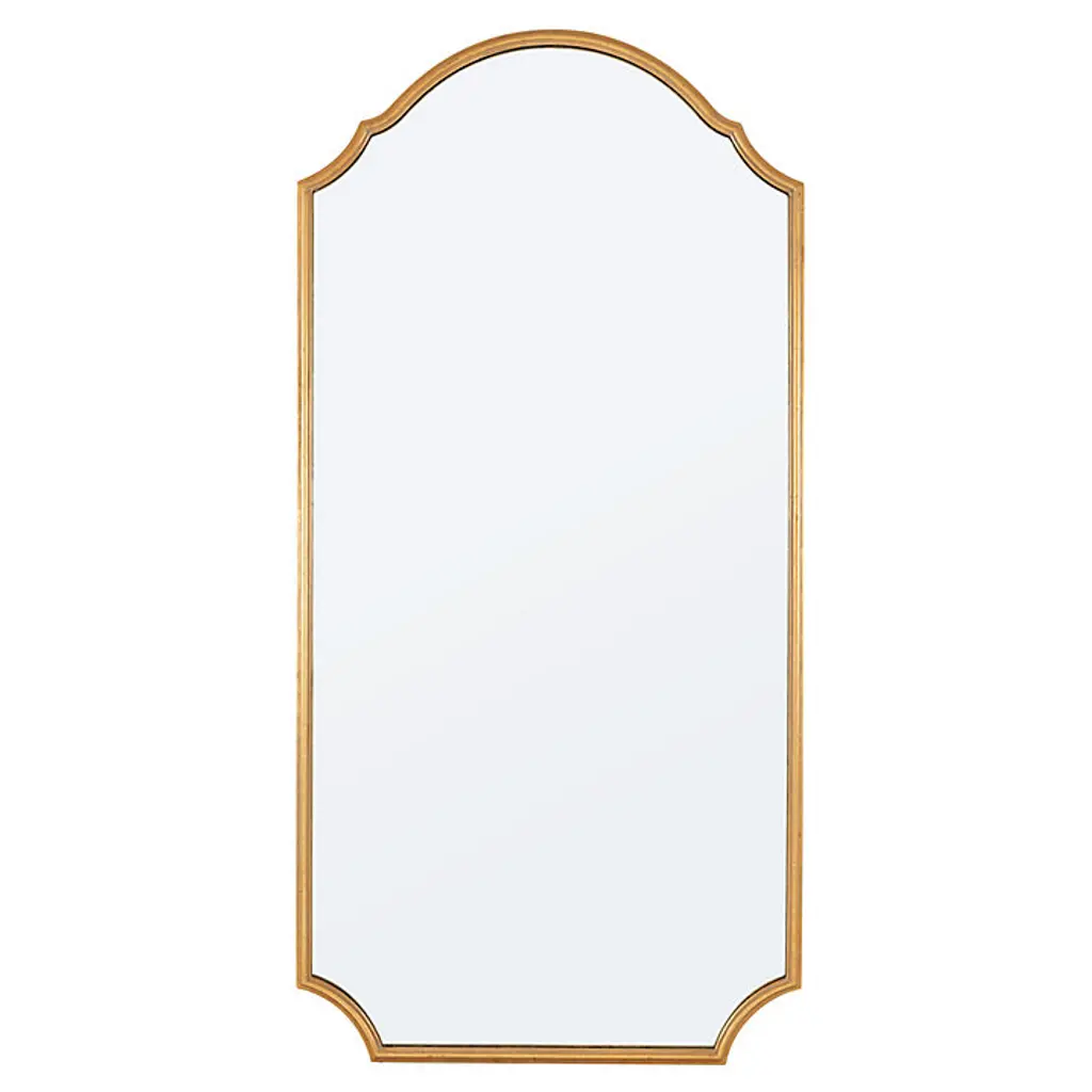 At almost 7 feet in height, our Capelle Mirror makes a spectacular statement. The slender molded frame is hand finished with a graceful scalloped bonnet and notched corners that make the grand scale feel light and elegant. Capelle Mirror features: