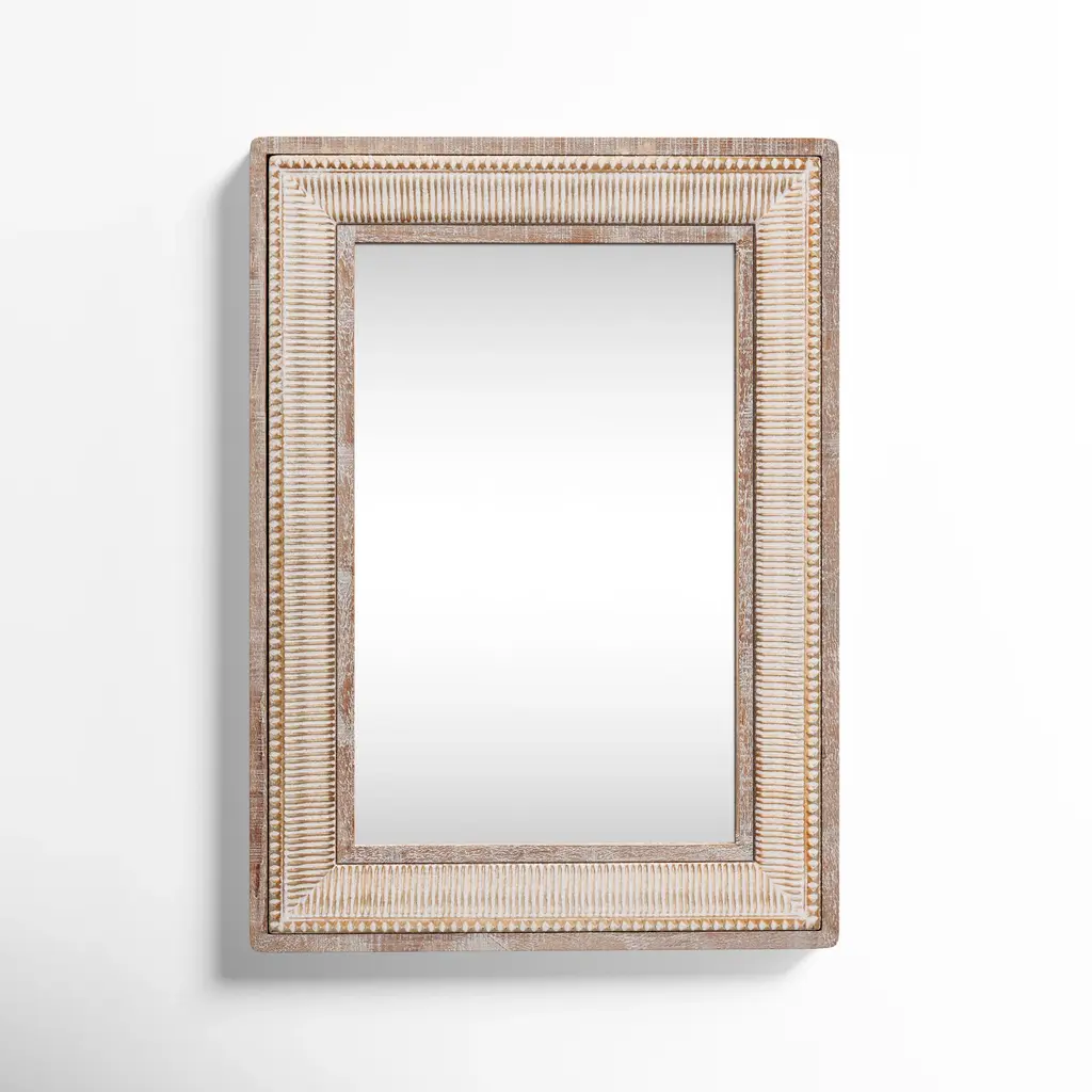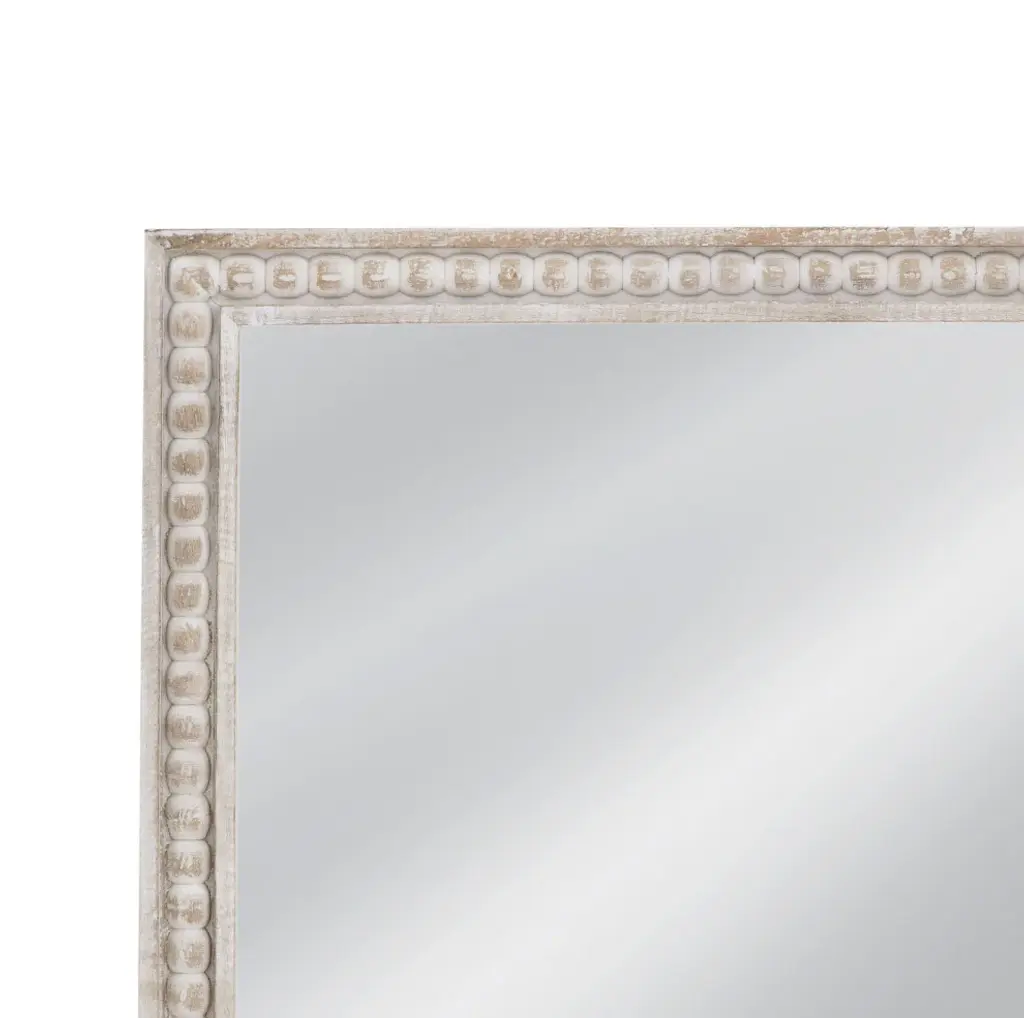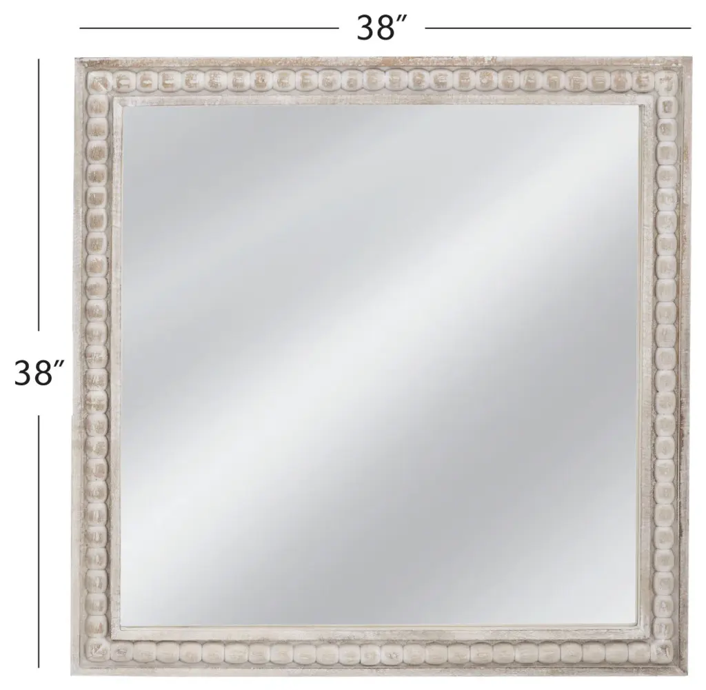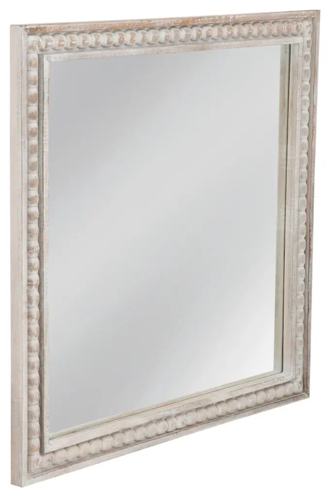 The Cappi Wall Mirror combines coastal and farmhouse vibes with its square shape and charming rounded details adorning the inside of the molding, all finished in a soothing white washed hue. Its timeless design effortlessly complements various decor styles, adding a touch of coastal warmth to any room. Crafted from high-quality wood, this mirror promises durability and style for your home decor needs.Features:Exudes coastal design with farmhouse aestheticsSquare mirror with rounded detailsWhite wash design for a stylish and functional additionCrafted with quality materials for stylish reliabilityFor over a century, Bassett Mirror has been synonymous with style and quality, transforming homes with its sophisticated and timeless designs. With a wide-ranging collection of furniture, lighting, mirrors, and art, Bassett Mirror seamlessly blends modern style with classic appeal. From rustic modern to luxe glam, each piece is thoughtfully crafted to inspire and elevate any space. Committed to exceptional value and customer care, Bassett Mirror makes it easy for homeowners to create beautiful, personalized interiors with confidence.