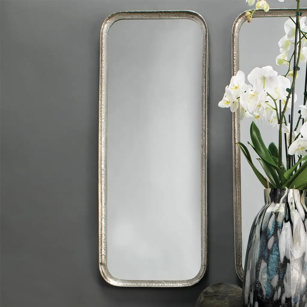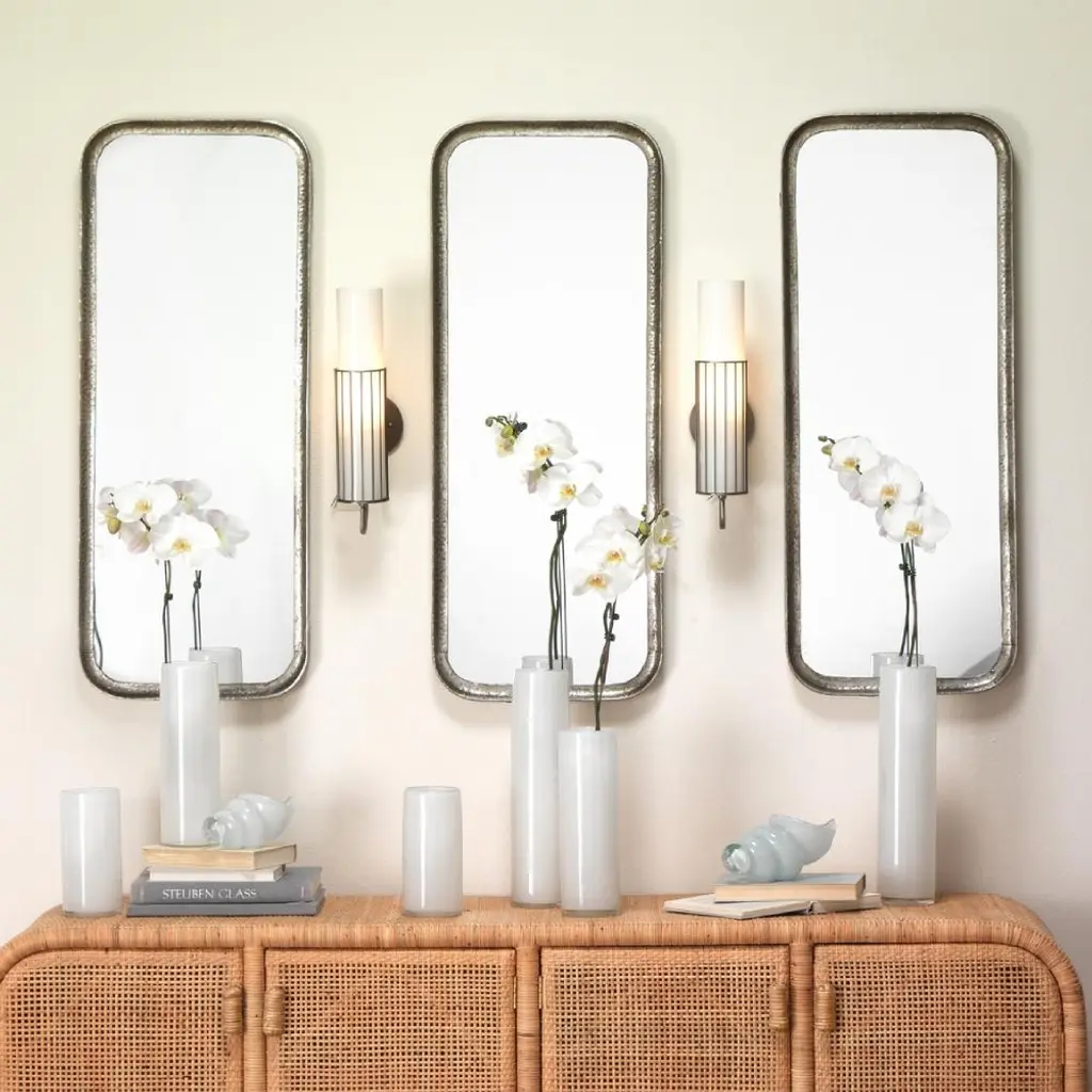 Capri Hollywood Regency Silver Leaf Iron Rectangular Wall Mirror