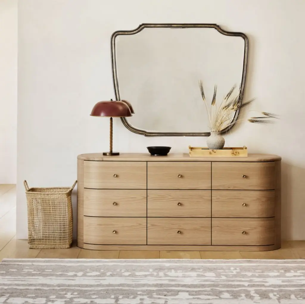 Inspired by a cottage spotted by our designers in Amsterdam, the Capriano mirror balances vintage charm with timeless style. The swooping frame finished in antique brass reminds us of a family crest, its graceful curves echoed in the beveled glass. Designed to be hung over a fireplace mantel, the hand-finished mirror graces your wall with ornate details and a subtle gleam.