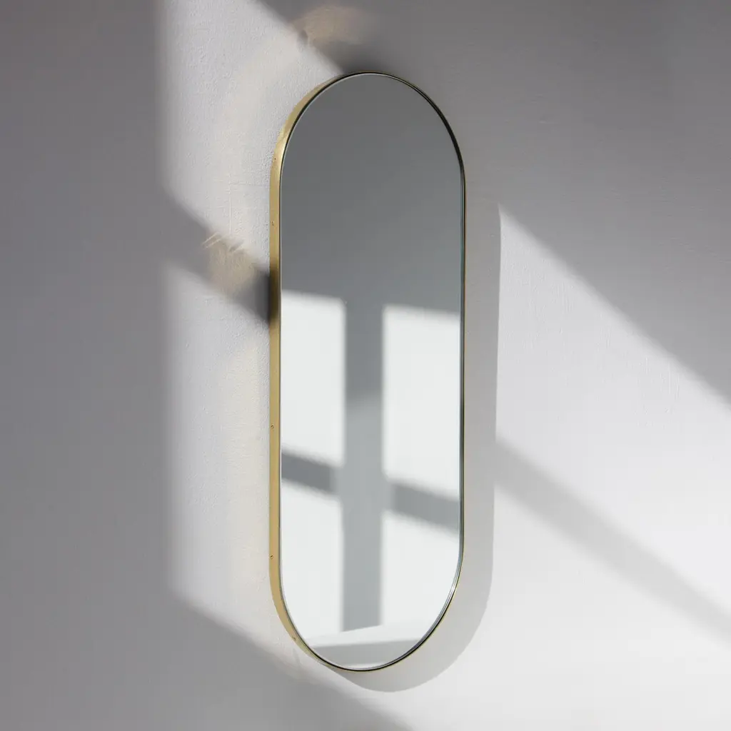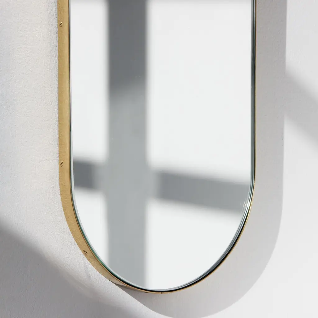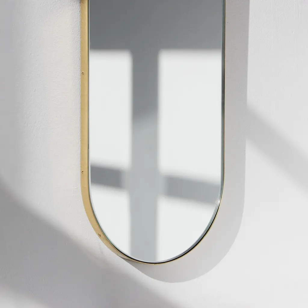 Capsula Capsule Pill Shaped Elegant Narrow Mirror With Brass Frame, Xl