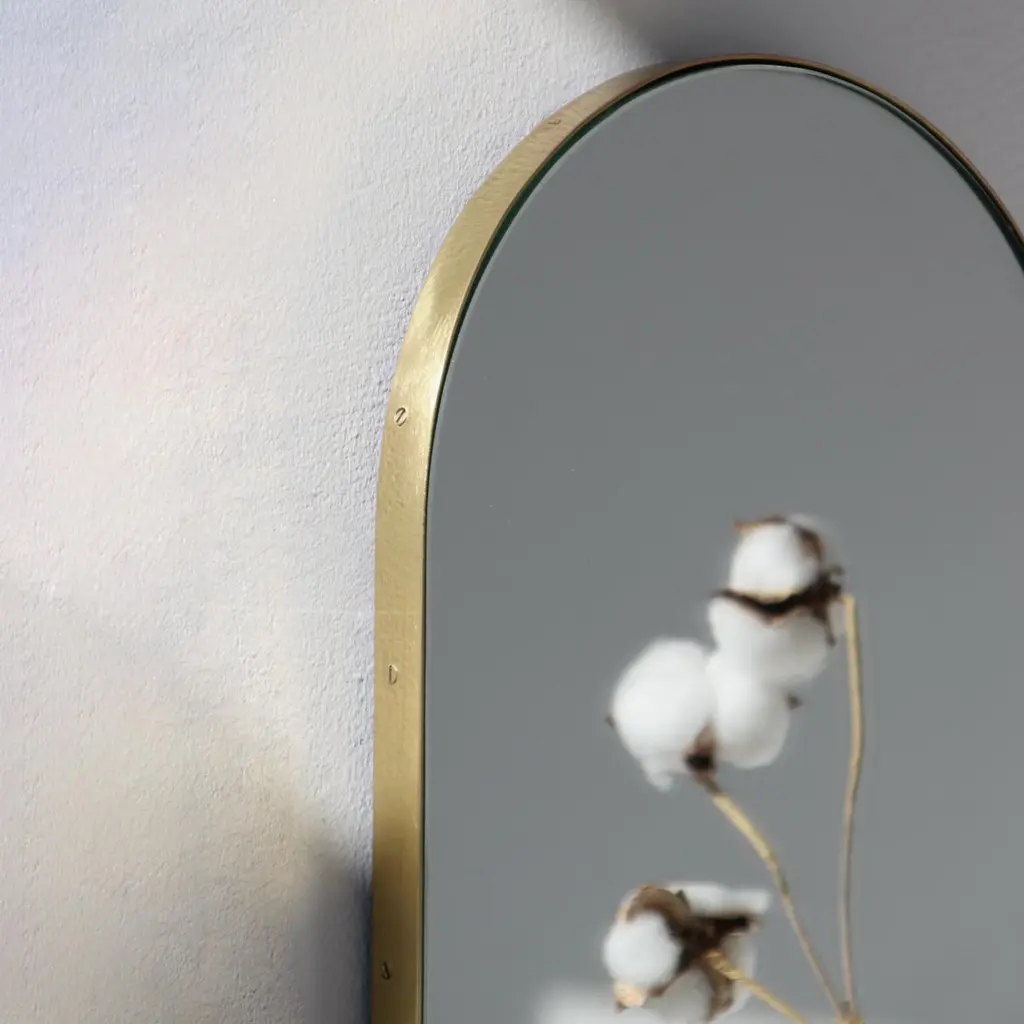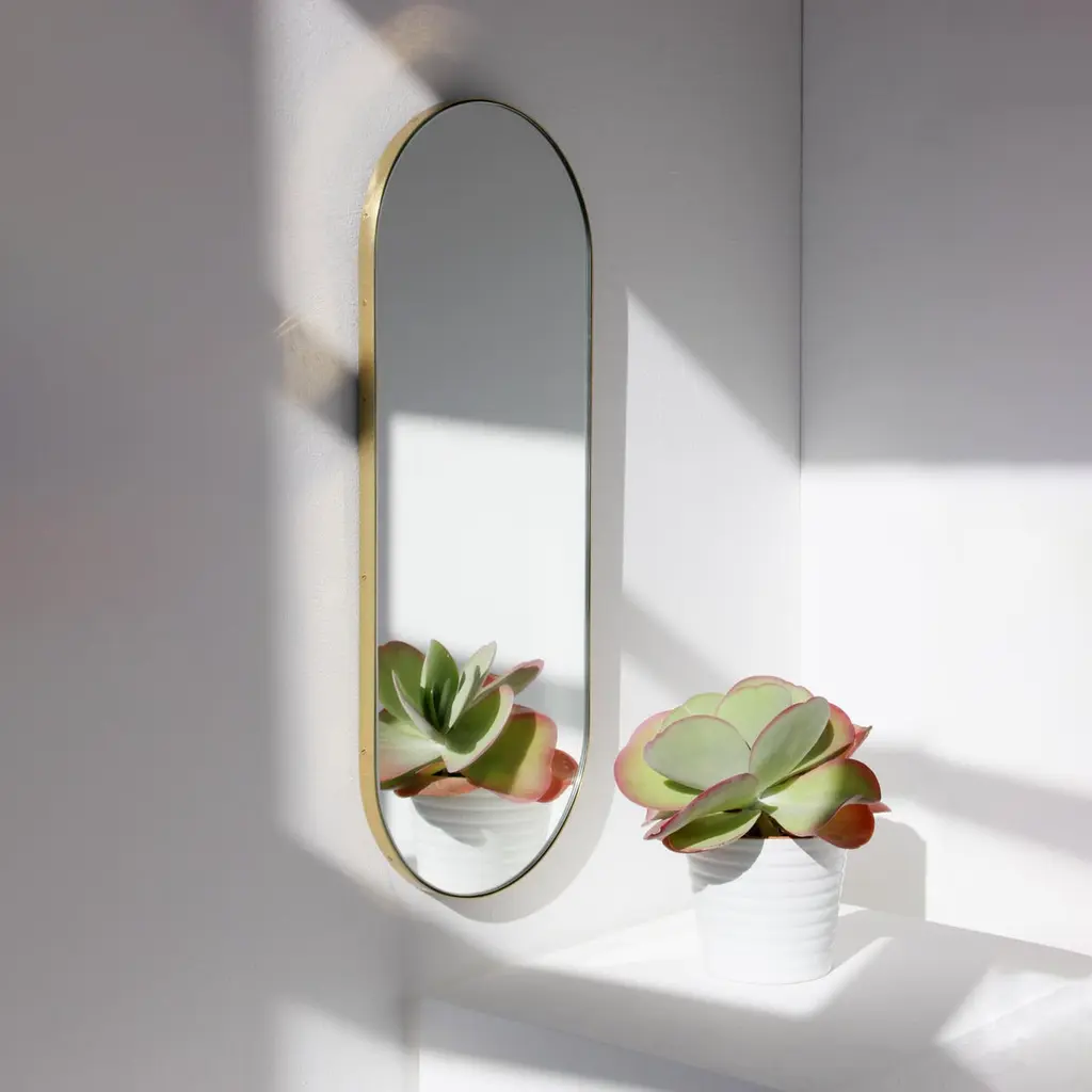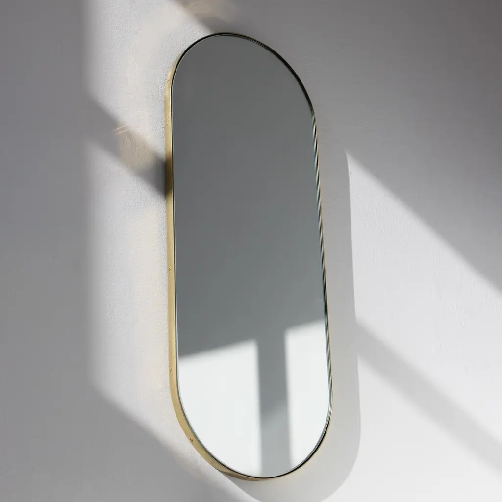 Capsula Capsule Pill Shaped Elegant Narrow Mirror With Brass Frame, Xl