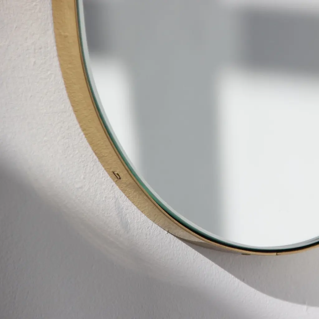 Modern Capsula™ pill shaped mirror with an minimalist solid brushed brass frame. Designed and handcrafted in London, UK. This mirror is fully customisable.Our mirrors are designed with an integrated French cleat (split batten) system that ensures the mirror is securely mounted flush with the wall.The mirror in the images illustrates a small size, measuring 27cm x 68cm x 1.8cm / 10.6in x 26.8in x 0.71inShipped safely and insured worldwide. All our mirrors are made on demand. Fabrication lead time for this particular mirror is approximately 4 to 5 weeks. Our mirrors are always shipped by courier express. Shipping via courier express typically requires 1 to 2 days to the UK, or 2 to 7 days outside the UK depending on the destination.Available in the following sizes:Small: 27cm x 68cm x 1.8cm / 10.6'' x 26.8'' x 0.71’’Medium: 37cm x 56cm x 1.8cm / 14.6'' x 22" x 0.71’’Large: 46cm x 71cm x 1.8cm / 18.1'' x 28" x 0.71’’Extra Large: 48cm x 97cm x 1.8cm / 18.9" x 38.2" x 0.71’’or any bespoke dimensions.Available options:- frame depth: 18mm / 0.71’’, 24mm / 0.94’’ and 30mm / 1.18’’- frame finish: brass (brushed, polished or with a bronze patina), copper, stainless steel, blackened stainless steel, or in a variety of colours- mirror tint: silver, bronze, black, rose gold / peach, blue or green- bevelling- back-illumination creating a halo effect- demister padPlease contact us for a quote for any bespoke specification or added options.ORDERS OF MULTIPLE MIRRORS OF THE SAME TYPE: Please contact us to receive a Packing and Shipping quote when ordering multiple mirrors of the same type. An order for multiple mirrors of the same type may not be accepted without extra packing and shipping fees. Thank you.