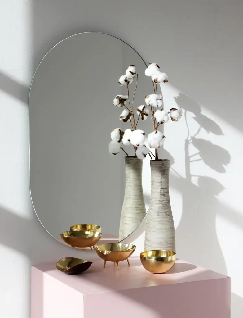 Capsula Capsule Pill Shaped Modern Frameless Mirror, Large