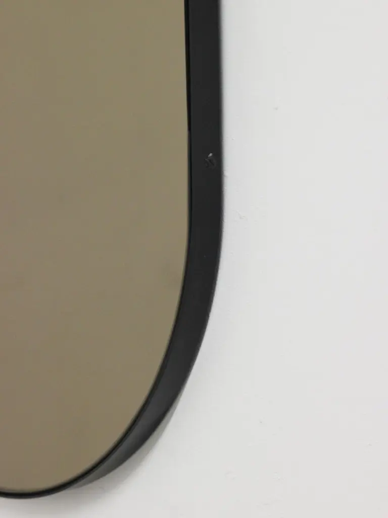 Modern handcrafted Capsula™ capsule / pill shaped bronze tinted mirror with an elegant black powder coated aluminium frame. Designed and made in London, UK. This mirror is fully customisable.Our mirrors are designed with an integrated French cleat (split batten) system that ensures the mirror is securely mounted flush with the wall.The images show a medium size mirror, measuring 37cm x 56cm x 1.8cm / 14.6'' x 22" x 0.71’’Shipped safely and insured worldwide. All our mirrors are made on demand. Fabrication lead time for this mirror is approximately 4 to 5 weeks. Our mirrors are always shipped by courier express. Shipping via courier express typically requires 1 to 2 days to the UK, or 2 to 7 days outside the UK depending on the destination.Available in the following sizes:Small: 27cm x 68cm x 1.8cm / 10.6'' x 26.8'' x 0.71’’Medium: 37cm x 56cm x 1.8cm / 14.6'' x 22" x 0.71’’Large: 46cm x 71cm x 1.8cm / 18.1'' x 28" x 0.71’’Extra Large: 48cm x 97cm x 1.8cm / 18.9" x 38.2" x 0.71’’or any bespoke dimensions.Available options:- frame depth: 18mm / 0.71’’, 24mm / 0.94’’ and 30mm / 1.18’’- frame finish: brass (brushed, polished or with a bronze patina), copper, stainless steel, blackened stainless steel, or in a variety of colours- mirror tint: silver, bronze, black, rose gold / peach, blue or green- bevelling- back-illumination creating a halo effect- demister padPlease contact us for a quote for any bespoke specification or added options.ORDERS OF MULTIPLE MIRRORS OF THE SAME TYPE: Please contact us to receive a Packing and Shipping quote when ordering multiple mirrors of the same type. An order for multiple mirrors of the same type may not be accepted without extra packing and shipping fees. Thank you.