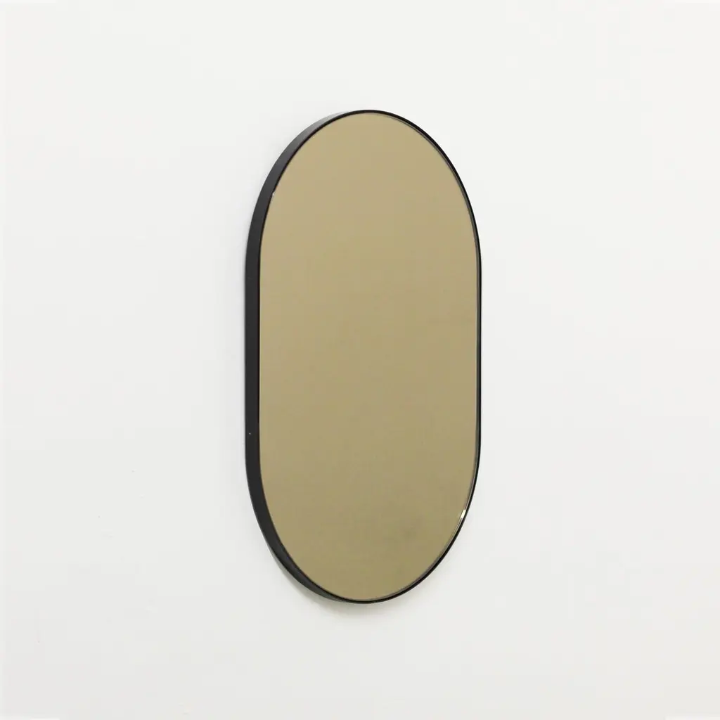 Capsula Capsule Shaped Bronze Contemporary Mirror With Black Frame, Small