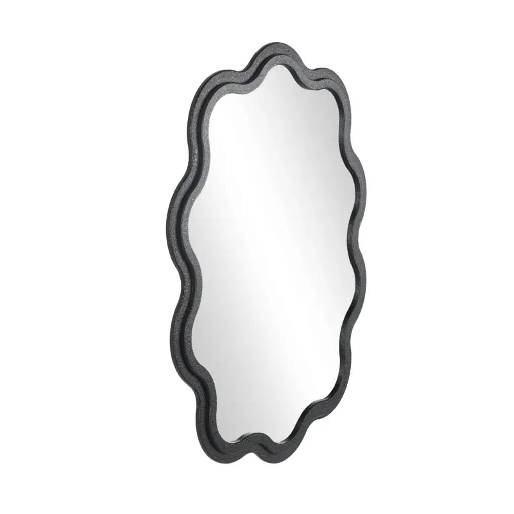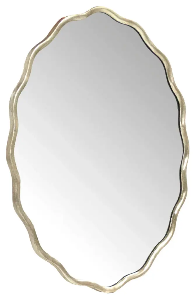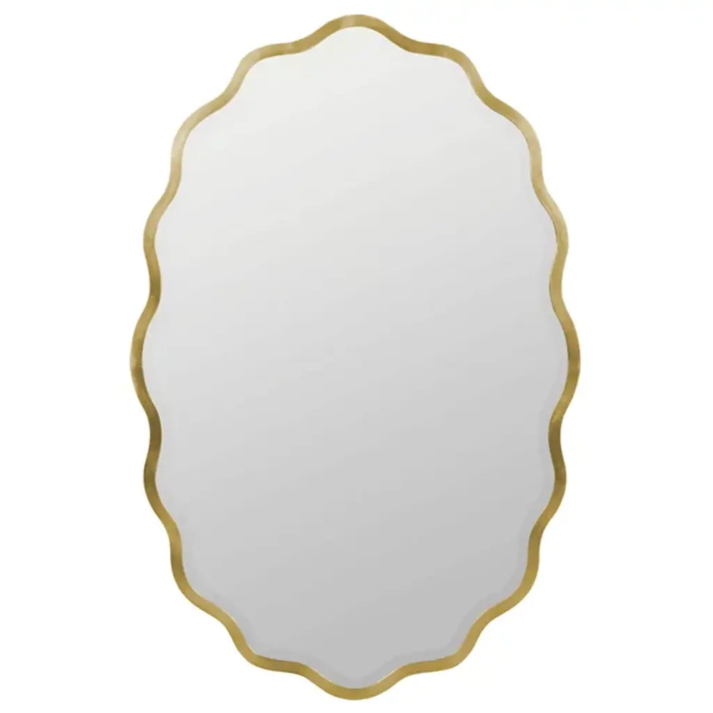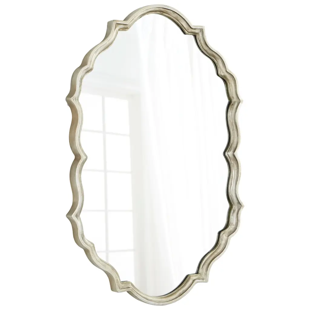 Scalloped beveled mirror in distressed silver finish. Zentique combines unique designs with high-end materials to bring you the very best home decor in the business. When you order a product engineered and manufactured by Zentique, you''re guaranteed to get a product that is built to last for years and years to come. This product will come in ship-safe packaging materials and will be sure to impress!DimensionsLength: 39. 25 in. Width: 1. 25 in. Height: 30. 25 in. Some assembly required: No