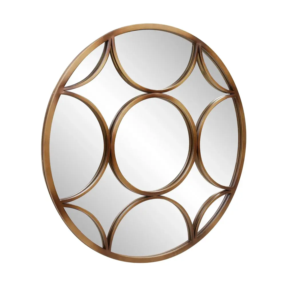 Finished in matte bronze, this vintage design has its origins in classic European architecture. The overall circular design is enhanced with an interior featuring multiple rounded shapes.