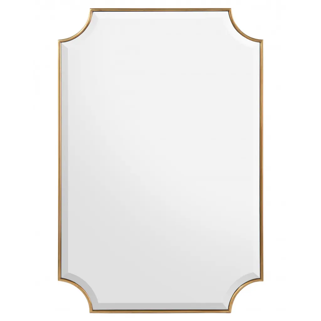 The beautiful Carol wall mirror features intricate details and a modern look. This piece is sure to add a statement to a space of any style! Finish: Gold Leaf Material: Engineered Hardwood Glass Dimensions: 33.50x21.75 Hangs Both Ways: Yes Beveled: No Use Case: Commercially Approved, Outdoor/Damp-rated. Installation: Ready-to-hang with included, D-Ring Hangers. Details: Hand-crafted Frame, Hand-crafted Finish Care: Wipe Clean with a damp, microfiber cloth.