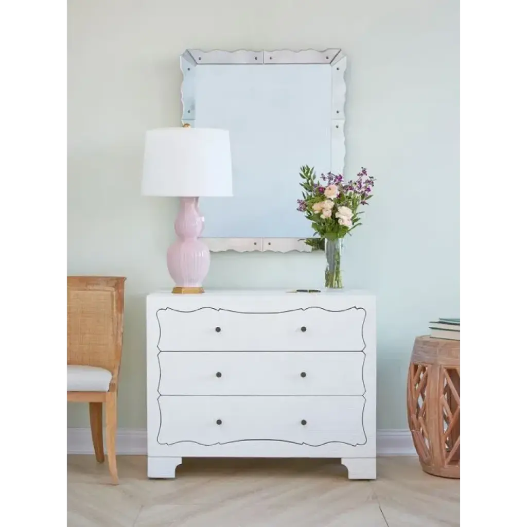 Antique finishes and hardware studs make the larger-scale Caroline Mirror feel like a find from a grand pied-à-terre in Paris, Venetian apartment, or socialite’s drawing room circa the 1940s. The stand-out piece glimmers with an elegantly cut and beveled glass border, finished in an antique style, with four corner keystones and shining bronze cabochons. With a durable wood backing and D-rings for both horizontal and vertical installation, the Caroline is crown jewel that’s meant to last in your home for years to come. We trust you’ll give it the spotlight it deserves.