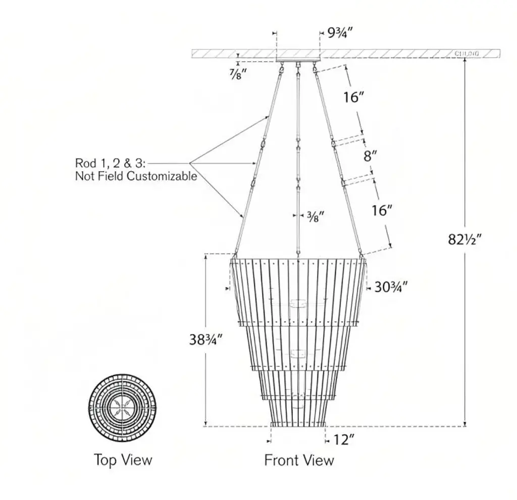 Cadence Large Waterfall Chandelier in Polished Nickel with Antique Mirror Designer: Carrier and Company Fixture Height: 38.75" Min. Custom Height: 54.25" O/A Height: 82.5" Canopy: 9.75" Round Mounting: Rod Shade Detail: Antique Mirror Socket: 12 - E12 Candelabra Wattage: 12 - 60 C11 Safety Rating Location: Damp